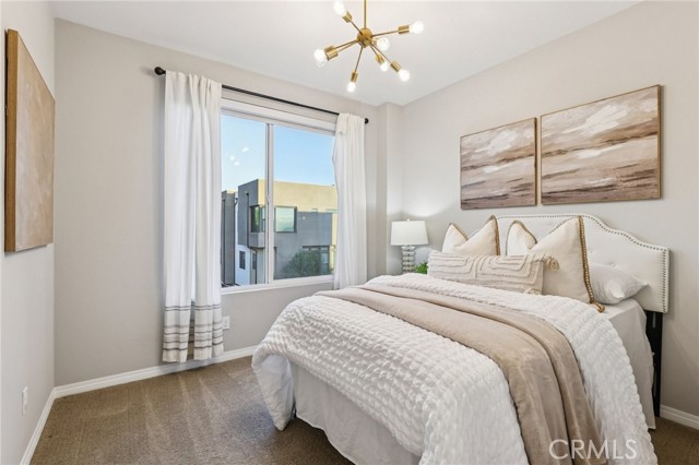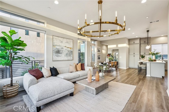 Like-New Luxury End-Unit Home in Irvine’s Great Park – Move-In Ready! Welcome to this nearly new, beautifully upgraded end-unit residence in Irvine’s highly desirable Great Park community—a perfect blend of modern design, functional layout, and refined details that offer exceptional value and comfort. Featuring 3 bedrooms, 2.5 bathrooms, and approximately 1,804 sqft (Builder) of bright, open living space, this home combines elegance with practicality. As a premium end unit, it enjoys abundant natural light, enhanced privacy, and a quiet, peaceful setting. The designer-landscaped front yard and the L-shaped 2nd-floor deck create an inviting space for relaxation and entertaining. Inside, the open-concept great room with 10-foot high ceilings seamlessly connects the living, dining, and kitchen areas. Oversized windows and floor-to-ceiling sliding doors fill the home with sunlight, highlighting its spacious and sophisticated feel. A designer-brand chandelier in the living area adds a touch of modern luxury and warmth. The chef-inspired kitchen showcases custom cabinetry extending to the ceiling, elegant quartz countertops, a large central island, and ample storage cabinets designed for both style and functionality. The primary suite is a private retreat featuring a walk-in closet, dual vanities, and a spa-style bathroom with upgraded stone countertops. Two secondary bedrooms are generously sized and perfect for guests, children, or a home office. On the first floor, a versatile bonus storage room offers space for bikes, snowboards, or personal gear—and can even serve as a cozy mini office or hobby space. A side-by-side 2-car garage provides convenience and direct interior access. Energy-efficient features include a leased solar system, EV charger pre-wire, energy-saving windows, and a tankless water heater, ensuring sustainable living with lower utility costs. Ideally situated within walking distance of top-rated Portola High School and Solis Park K–8 in the award-winning Irvine Unified School District, where daily school drop-offs become effortless. Just minutes from Woodbury Town Center, Irvine Spectrum Center, and Kaiser Permanente, with quick access to I-5, 133, 405, and 241 freeways. Enjoy all the world-class amenities of Great Park and reach Newport Beach or Laguna Beach in about 20–25 minutes. This home perfectly balances modern elegance and everyday convenience—a true gem in the heart of Irvine’s most vibrant community.