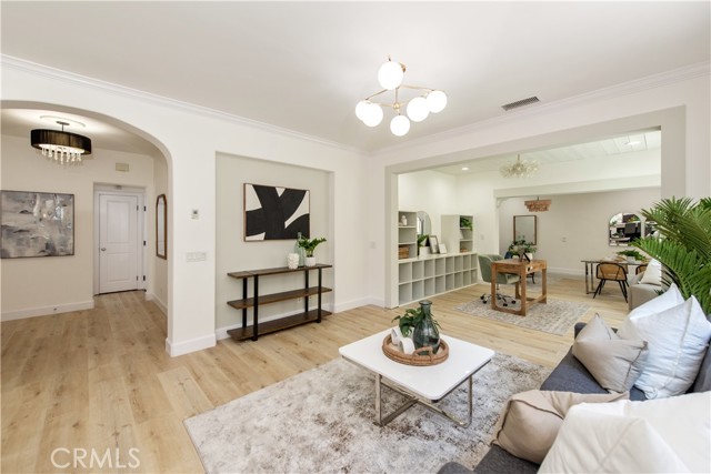 Welcome to 7 Nature, a charming 1,800 SF (inclusive of downstairs expansion), 3-bedroom, 2.5-bathroom DETACHED condo with NO COMMON WALLS in Irvine's highly desirable Woodbury community. This beautiful home features a fully customized and redesigned open-concept layout with wood flooring throughout, seamlessly connecting the living and dining areas perfect for entertaining. The gourmet kitchen is equipped with modern appliances, including a freezer, microwave, range/oven, and trash compactor. Upstairs, three well-appointed bedrooms provide ample space, with the master suite offering an en-suite bathroom for added privacy. Central air conditioning and forced-air heating ensure year-round comfort. The attached garage accommodates one vehicle, with additional parking available within the community. Residents enjoy access to Woodbury's resort-style amenities, including parks, pools, and recreational facilities, all within walking distance. Located in the award-winning Irvine Unified School District, this home is just steps from Woodbury Elementary School. Nearby shopping centers, dining options, and easy access to major highways make this an unbeatable location. Experience the perfect blend of convenience, style, and community at 7 Nature. Buyer to verify additional square footage.