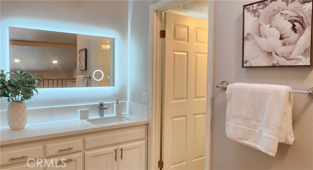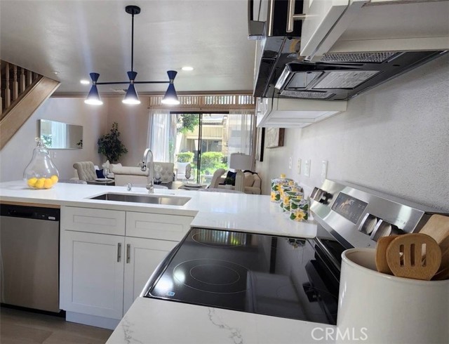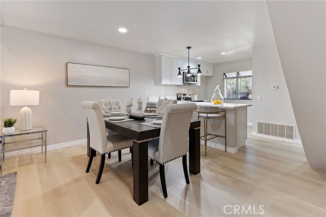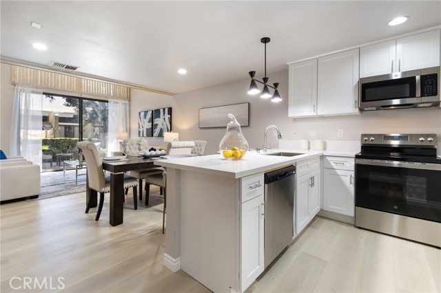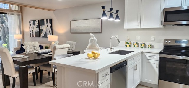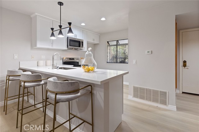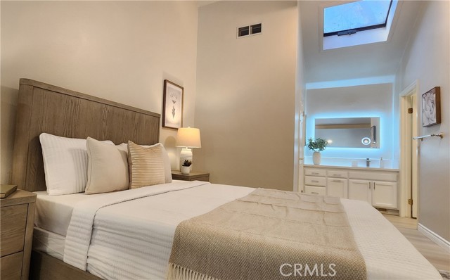 Discover this beautifully remodeled two-story, one-bedroom, one-bathroom attached Single Family Residence with it's own lot 734 sf nestled in the heart of nature-rich Northwood. Enjoy unparalleled privacy with no neighbors above or below, and a serene backyard featuring a peaceful stream and no direct rear neighbors. Inside, find a host of upgrades including new vinyl wood flooring, a stunning new kitchen with a large peninsula island and quartz countertops with ample bar seating, perfect for entertaining and new appliances in kitchen. The inviting living room boasts soaring ceilings and a supersized sliding door leading to a private patio with tranquil creek views. Upstairs, a spacious loft-style bedroom suite awaits, complete with a walk-in closet, ensuite bathroom, and a skylight bathing the space in natural light. The bathroom features a brand-new shower, bathtub, and quartz countertop. Added conveniences include an in-unit washer/dryer hookup in a patio storage closet and a reserved parking space. Residents of The Lakes HOA benefit from 2 pools, spas, tennis courts, and included water and trash services. Located within the award-winning Irvine Unified School District.