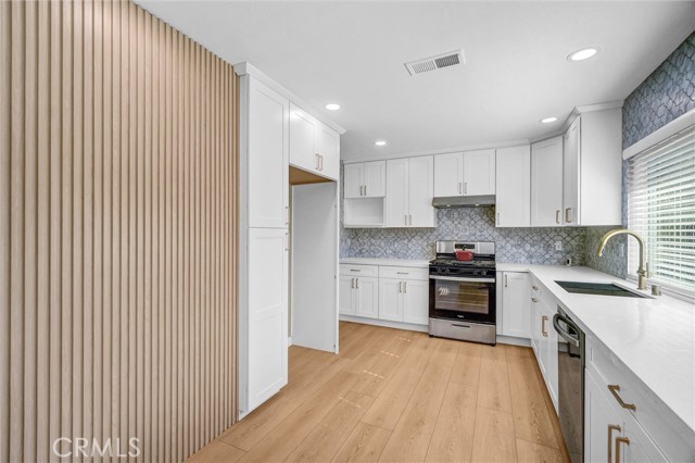 Welcome to 8 Dogwood, an exquisite 3 bedroom, 2 bath home offering a coveted, turn-key lifestyle in one of Irvine's most sought-after communities. Step inside to an open-concept floor plan bathed in natural light, courtesy of large dual-pane windows and a desirable southwest orientation. The seamless flow is accentuated by recessed lighting, durable wood-styled vinyl flooring, and a sophisticated, marble-inspired gas fireplace that serves as a stunning focal point. The designer kitchen is a culinary dream, featuring pristine white cabinetry, quartz countertops, stainless steel appliances, and beautiful tiling accent walls—perfect for both everyday living and entertaining. The primary master suite features a modern en-suite bath with dual sinks and walk-in shower. One of the two secondary bedrooms offers the unique advantage of a private enclosed yard. Both bathrooms present an elegant finish, complete with white cabinetry, chic gold-tone hardware, and contemporary LED-lighted mirrors. The property is complete with a newly upgraded 2 car garage with epoxy flooring, new garage door opener with remote wifi access and custom cabinetry. Residents have access to exceptional community amenities, including a clubhouse, pool, spa, and playground. Perfectly situated near top-rated Irvine schools, UCI, parks, premium shopping, and dining. This immaculate, move-in-ready home was recently appraised at $1.475 million and is now aggressively priced for a swift sale. An unparalleled opportunity awaits to make 8 Dogwood your new home.