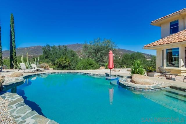 Welcome to your own private Tuscan Villa retreat, nestled among majestic oak trees and natural boulders on 5+ scenic acres in beautiful Jamul. This recently remodeled two-story home offers timeless elegance and modern comfort throughout. Step through the gated entry to discover soaring 10’ ceilings, graceful arched doorways, a spacious formal living room with a high-efficiency fireplace, and a grand formal dining room perfect for entertaining. The gourmet kitchen features updated finishes and flows effortlessly into open living spaces filled with natural light. The luxurious primary suite is conveniently located on the main level, providing a peaceful retreat with views of the surrounding countryside. Upstairs, you’ll find additional bedrooms and a large game room ideal for family fun or relaxation. Step outside to your private oasis—complete with a sparkling pool surrounded by mature oaks and natural rock formations. Additional highlights include a detached 3-car garage, an enormous detached workshop, paid SOLAR system, tankless water heater, and a whole-house water softener. Outdoor enthusiasts will love the ample room for toys, boats, and RVs, along with three 50-amp plugs for convenient hookups. This exceptional property blends country living with refined style—offering privacy, comfort, and plenty of space to enjoy the serenity of nature while remaining just minutes from town conveniences. Experience the beauty and tranquility of this extraordinary Jamul estate!