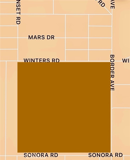 A developer's dream. This is the largest parcel available on the market in Joshua Tree. One square mile. About 22 miles northwest of the Joshua Tree National Park which over 3 million tourists visit every year. This part of the park is home to over 8000 climbing routes, making Joshua Tree a world-famous destination for rock climbers.Two separate parcels 0631-151-03-0000 (480 acres) & 0631-151-04-0000(160 acres) total 640 acres with one mile of paved main road.Check with the city for building codes and more possibilities. Located between Border Ave, Winters Rd, Sunset Rd & Sonora Rd. Take Highway 62 to Sunburst Ave, then turn right on Border Ave to land.