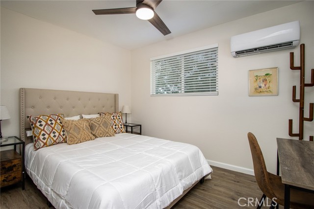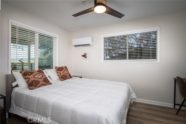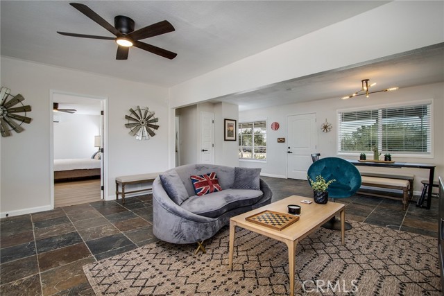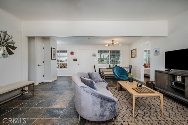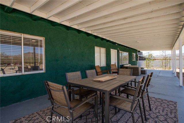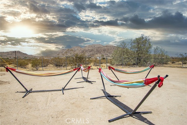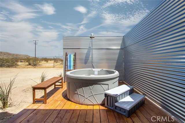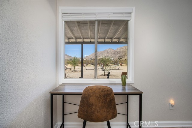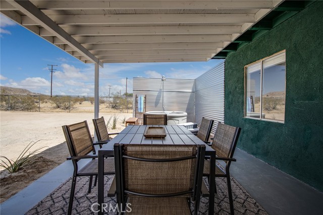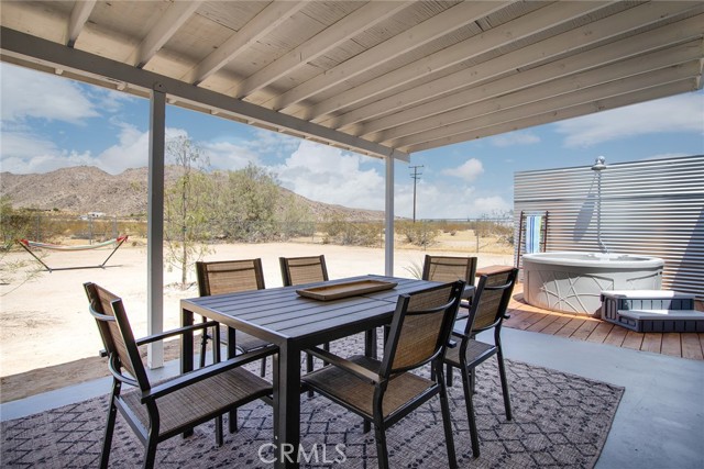 Mid Century Joshua Tree Pad with Private Mountain views! Welcome to Casa Verde—a stylish, sun-drenched retreat tucked away on the last paved street below the stunning Bartlett Mountains. With a wide-open parcel to the north and few neighbors beyond, this home offers rare privacy, panoramic views, and the feeling of being worlds away—yet you're just minutes from downtown Joshua Tree and the National Park. Inside, the open-concept layout is filled with natural light and flows effortlessly from the living and dining areas into a sleek, updated galley kitchen. The extra-large primary suite is a true sanctuary, complemented by two additional well-appointed bedrooms. Brand new $1500 EV charger installed! Outdoors, enjoy seamless indoor-outdoor living with a spacious front porch shaded by a towering desert pine and a wide covered back patio featuring a hot tub deck, privacy fencing, al fresco dining, and stargazing hammocks. A detached bonus casita offers flexible space for guest overflow, creative use, or added rental potential—expanding both comfort and value. Thoughtful upgrades include new 200 & 70 AMP panels, mini splits, and an 8'x6' Tuff Shed with brand new washer/dryer. Casa Verde blends elevated design with peaceful desert living in one of Joshua Tree’s most coveted locations.