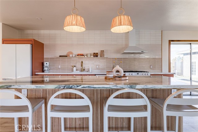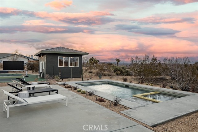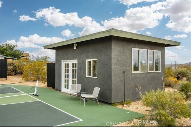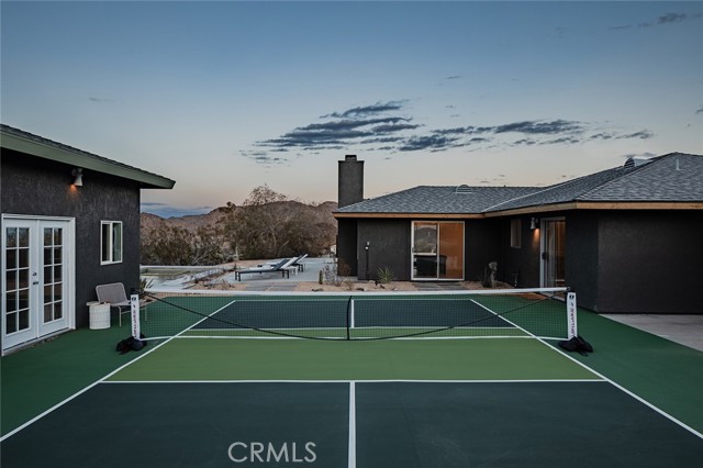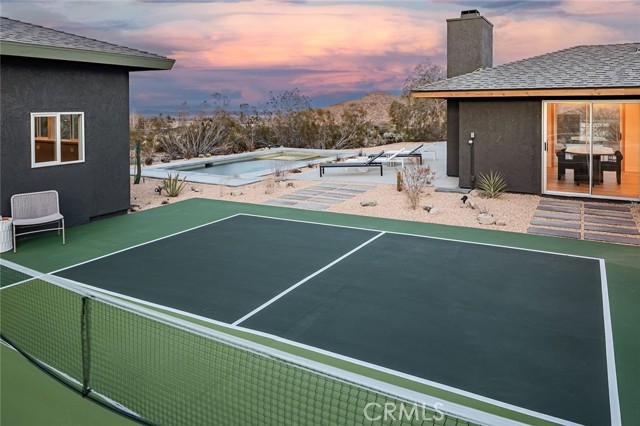 Mojave Paddle Club: Meticulously designed home & grounds featuring a custom pickleball court and in-ground pool & spa (with automatic retractable cover). STR earning are approximately $100k gross over the previous 12-months. The interior – thoughtfully laid out by Studio Collab Designs – features an open-concept floorplan with high-end furnishings, décor and materials sourced from renown brands such as Bedrosians, Fireclay and Zia Tiles. Turnkey/Fully furnished interior - including a custom Interior Define sofa, a dining room table from Burke Decor & another dining room table from Inside Weather, in addition to high quality Tuft & Needle mattresses, Floyd Bedframes to name a few. Pet friendly fully-fenced backyard. Mojave Paddle Club has been featured in Palm Springs Life Magazine. Currently used as a vacation getaway and vacation rental, this spacious home comfortably sleeps up to eight guests in three rooms. The kitchen, dining and living area compose one wing of the house with a third room set up to be utilized as an office, game room, or additional bedroom. Primary bedrooms are located at the opposite end to allow for privacy and sleeping while other stay up socializing. The primary bedrooms showcase exquisitely tiled bathrooms and private access to the court and pool. Back out in the living area, relax by the wood burning fireplace or retreat to the yoga room out back. The expansive kitchen area is fully equipped and offers views of the outdoor patio, pool, and pickleball courts. A table for six in front of the fireplace provides an ideal space for formal dining or casual gatherings. Or enjoy meals al fresco near the propane BBQ and outdoor dining area. Fully remodeled and updated inside and out, new surfaces everywhere and new systems, including an efficient central HVAC. Smartly landscape with drought resistant vegetation. Dark nights perfect for stargazing from the spa. Minutes to the downtown Farmers Market or the front gate to Joshua Tree National Park just up the road. Come visit this exquisite resort-like ambiance today.