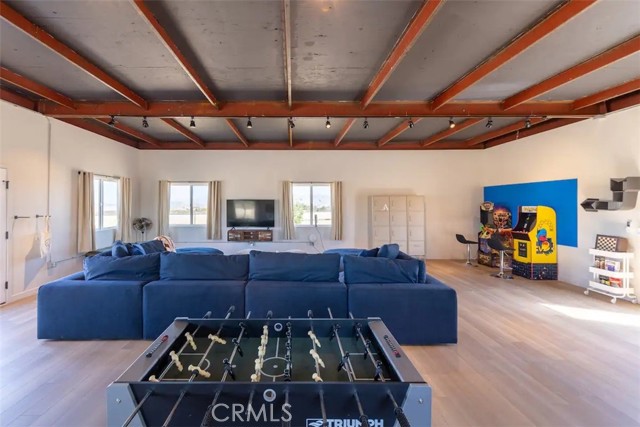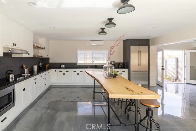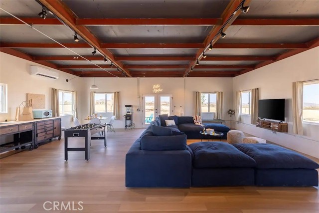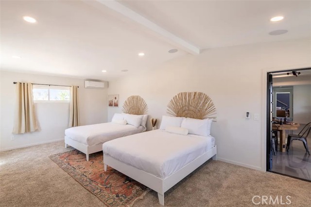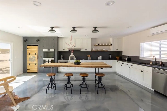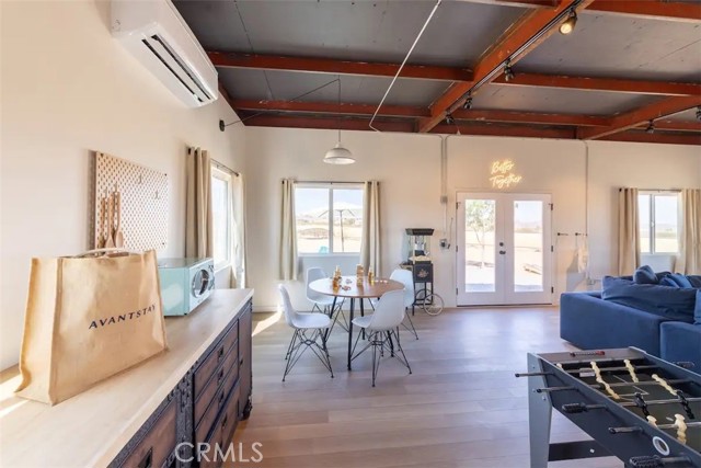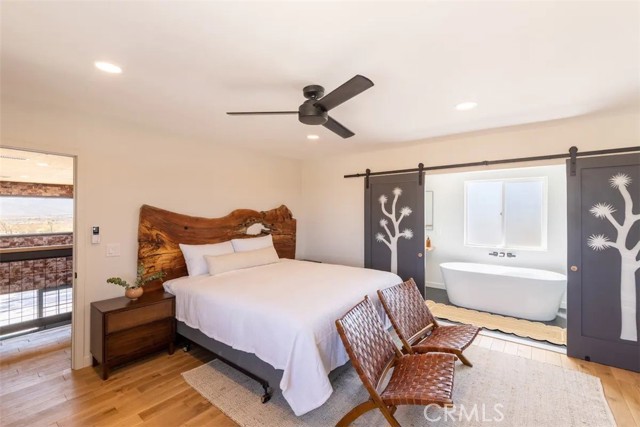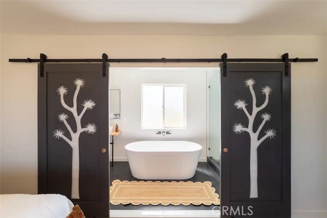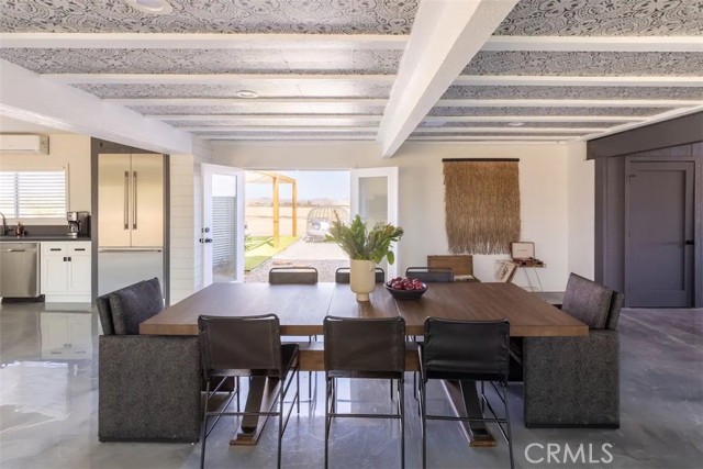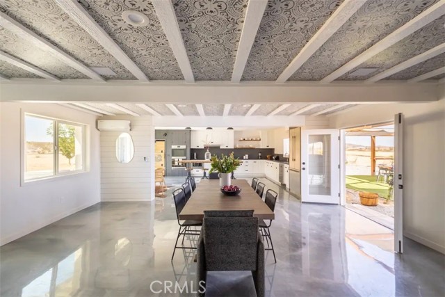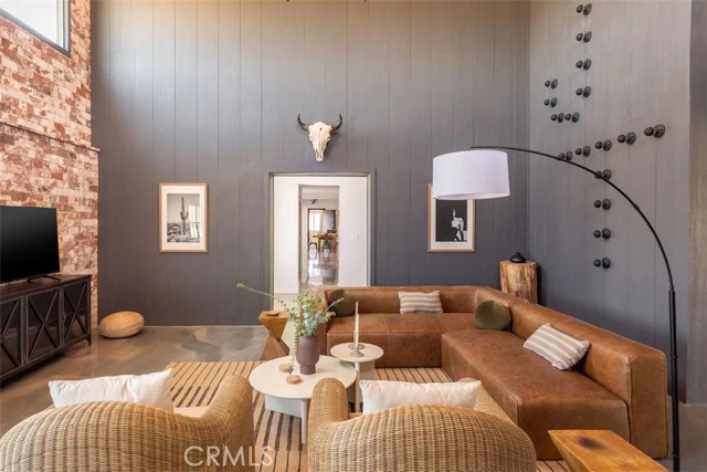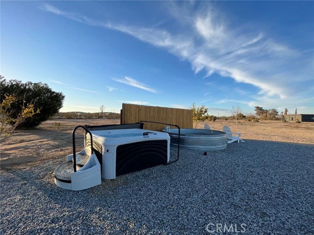 Prepare to be amazed by this extraordinary creation! Expertly designed and meticulously crafted, this unique Joshua Tree retreat is situated in a dream desert location. Nestled on nearly 5 acres land, fully fenced acres, this stunning estate offers breathtaking desert views and sunsets. It features 4 bedrooms, 5 bathrooms, and an oversized media room, plus a separate detached guest or creative space. As you enter the main living area, you are greeted by soaring ceilings and top-of-the-line, custom-crafted designs and accents in every direction. The phenomenal layout maximizes privacy while creating an entertainer's paradise. The home comes fully furnished with designer-selected new and vintage pieces included in the sale, exuding Joshua Tree's artistic and quirky culture throughout. The primary suite occupies the entire upper level, featuring a lavish penthouse-like ensuite, walk-in closet, and romantic desert views. Each bedroom has its own custom-designed ensuite bathroom. The grand open-concept kitchen is a chef's dream, with handcrafted doors, a live-edge wood custom-built island, and direct access to multiple lounge areas, including a covered dining area with built-in water misters and bar seating. The outdoor space is a true playground for all ages. Enjoy a refreshing dip in the oversized outdoor cowboy pool, entertain friends at the horseshoe ring, or host an unforgettable gathering in the resort-like private setting. The separate retreat is perfect for guests, parties, or creative endeavors such as a future recording studio, artist retreat, or in-law quarters. The sleek U-shaped driveway offers ample parking, including an EV charger. Conveniently located on a paved road near downtown Joshua Tree, Joshua Tree National Park, and nearby art and music festivals, this property is ideal for those seeking a profitable vacation rental investment or a dream desert home. This rare gem is sure to impress!