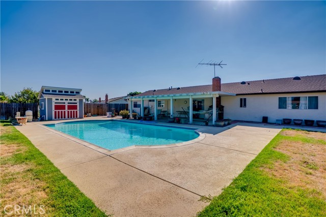 Welcome to this spacious single story ranch style home on a sprawling lot in Jurupa Valley! This property offers the perfect blend of comfort, outdoor living, and incredible potential for both family living and entertaining. Main Home Features 5 bedrooms, 3 bathrooms, and an open, functional layout. Bright living spaces with large front windows bringing in natural light. Generously sized kitchen and dining areas ready for your personal touch. Attached 2 car garage with a wide driveway and plenty of parking for guests, RVs, or work vehicles. Lot & Outdoor Living Expansive over 1/2 acre lot with endless possibilities. Backyard paradise featuring a sparkling in-ground pool, perfect for sunny California days. Huge covered patio ideal for barbecues, gatherings, or relaxing poolside. Multiple storage sheds and a large concrete pad, perfect for workshops, extra storage, or small business use. Large open yard space ready for gardening, additional structures, or outdoor recreation. With no HOA, this spacious lot has excellent potential as a horse property or hobby farm. Location Highlights Conveniently located near major freeways for an easy commute. Minutes from shopping, schools, parks, and equestrian trails. Enjoy the privacy of a larger lot while still being close to city amenities. This home is a rare find in Riverside County, combining a traditional single story layout with a resort style backyard and plenty of usable land. Whether you’re looking to create a family retreat, a hobby farm, or just need extra space, this property checks all the boxes! Don’t miss the opportunity to own this unique Jurupa Valley gem. Schedule your private showing today!