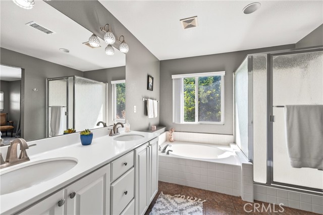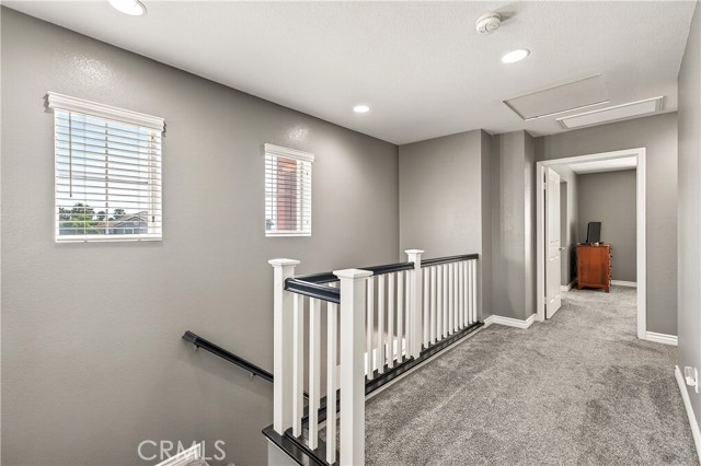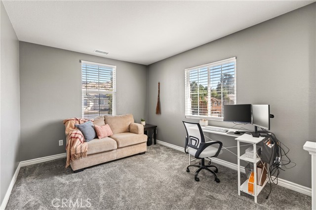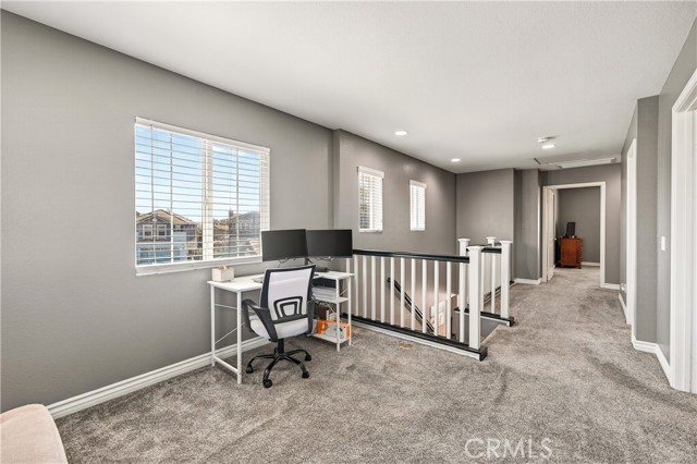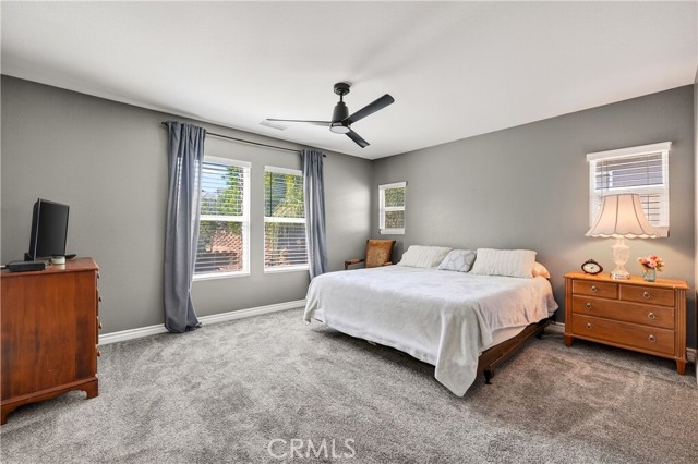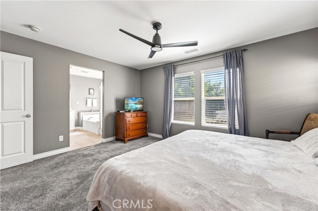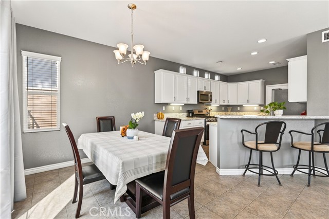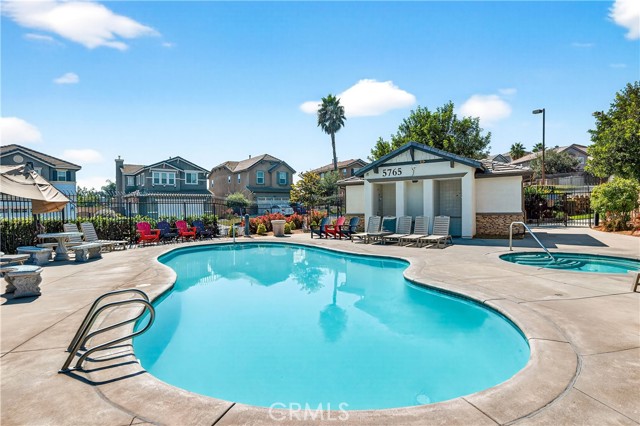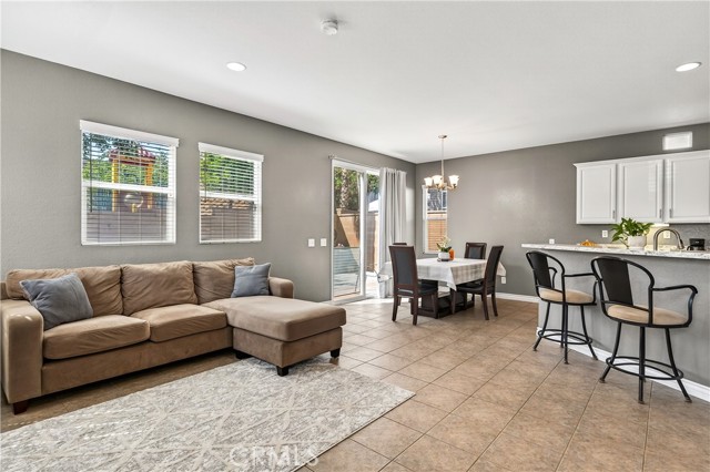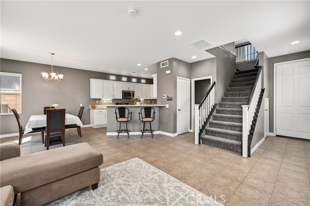 Have you been waiting for the Perfect Home? Welcome Home to this turnkey residence in the highly desired community of Canterbury at Indian Hills Golf Course. It has been thoughtfully upgraded throughout, and pride of ownership shines from the moment you step inside. The open-concept floor plan is filled with lots of natural light, welcoming you and your guests into a spacious living room that flows seamlessly into the dining room and kitchen.The kitchen is a chef's dream with upgraded cabinets and counter tops, with plenty of counterspace and storage. You can enjoy casual meals at the breakfast bar, and serve a gourmet meal in the dining room. Upstairs, you’ll find a versatile layout designed to fit your active lifestyle. A generous loft offers endless possibilities, set it up as a home office for remote work, a media room, or even an extra bedroom. A full bath and additional bedroom sit nearby, while the spacious primary suite awaits at the end of the hall, complete with a walk-in closet and a luxurious en-suite bath featuring dual sinks, a soaking tub, and a separate shower. The laundry room is conveniently placed between the bedrooms for easy access. This home also features an oversized two-car garage with direct entry, and its prime location offers unmatched privacy with no neighbors to the right or behind. Enjoy being just steps away from the community pool, park, and guest parking, while also being close to shopping, dining, and freeways, making everyday life convenient and connected. The best of Jurupa Valley living awaits, comfort, flexibility, and lifestyle all in one!
