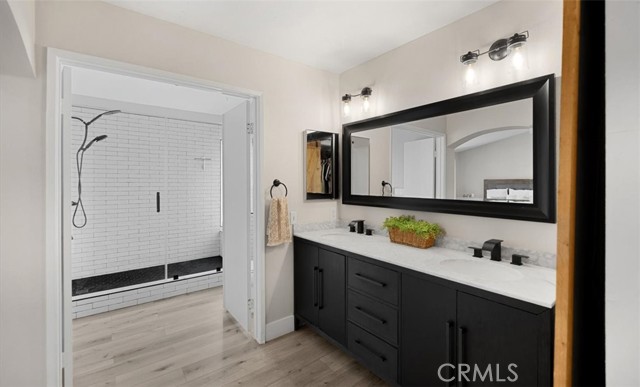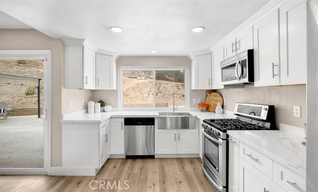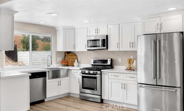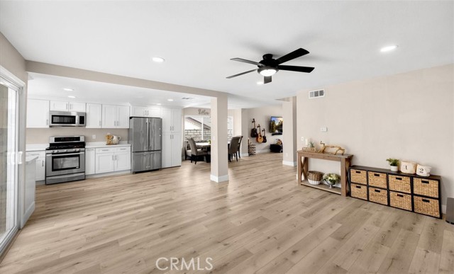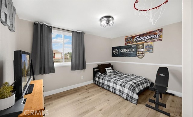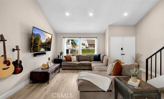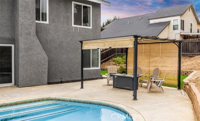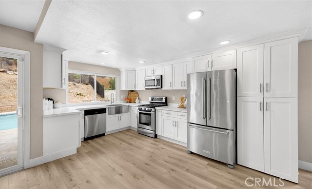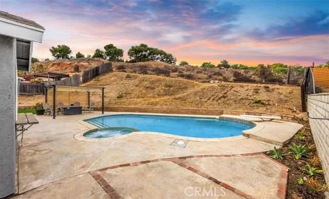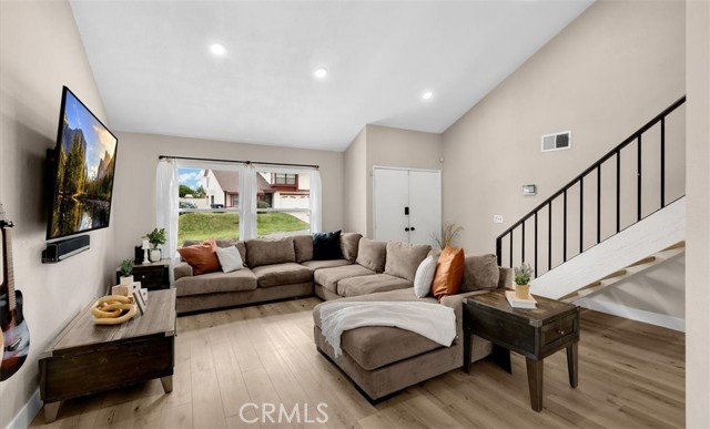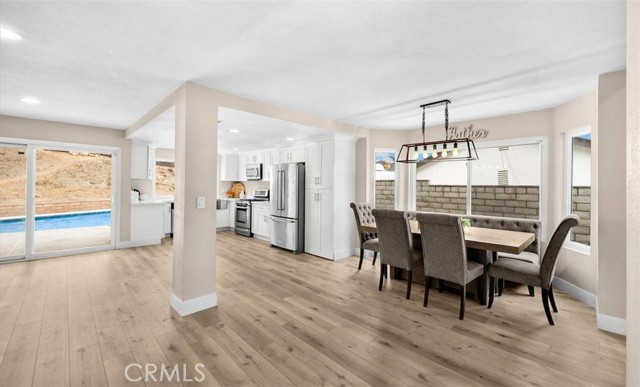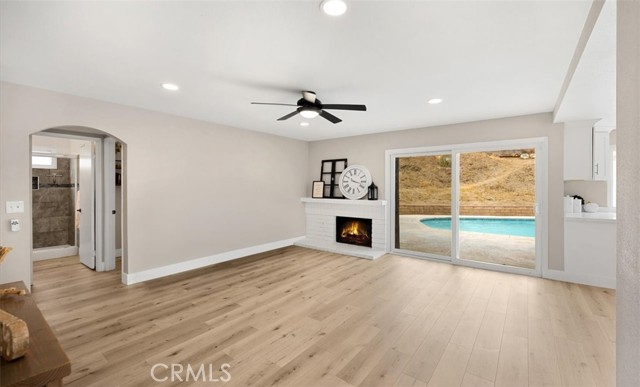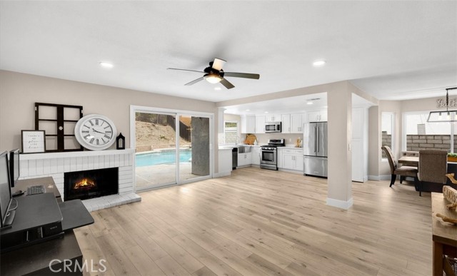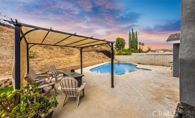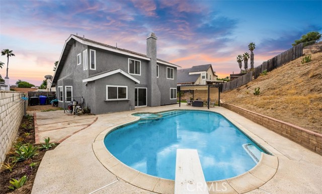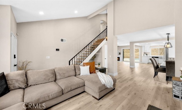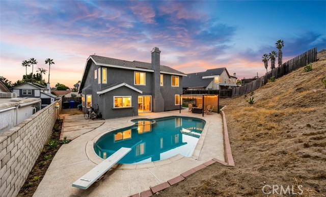 Elegant Turn-Key Home in the Hills of Jurupa Valley Welcome to this stunning fully remodeled home nestled in the scenic hills of Jurupa Valley, located right on the desirable Indian Hills Golf Club. This 4 bedroom, 3 bathroom home offers 2,095 square feet of modern living space with an open and airy floor plan, perfect for both everyday living and entertaining. Step inside to a grand entryway with vaulted ceilings that flow through the dining room and into the spacious kitchen. Enjoy brand new flooring throughout and an abundance of natural light from large windows overlooking the backyard. The show stopping chef’s kitchen features white cabinetry, a stainless-steel farmhouse sink, and a seamless connection to the family room. Cozy up by the white brick fireplace or open the sliding glass doors to the backyard oasis. The outdoor space is a true retreat, complete with a sparkling pool, shade pergola, large side yard, and plenty of room for entertaining family and friends. Downstairs includes a comfortable bedroom with corner windows and a stylishly updated bathroom with a tiled shower and sliding glass doors. The modern staircase with sleek metal railings leads to the upper level, where you’ll find an oversized primary suite featuring double door entry, vaulted ceilings, and a luxurious en-suite bathroom. The primary bath offers dual sinks, an arched entryway, and a large walk-in closet with barn doors. Truly a dream! Upstairs also includes two additional bedrooms, a full hallway bathroom, and a generous linen closet. Beautiful white wainscoting and freshly painted walls add a refined touch and character throughout upstairs. Additional highlights include a three-car garage, large side yard, low tax rate, move in ready, and no HOA. Conveniently located near top-rated schools, shopping, Golf course, and major freeways. This home truly has it all blending modern sophistication with timeless design in one of Jurupa Valley’s most desirable neighborhoods.