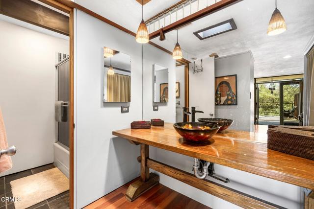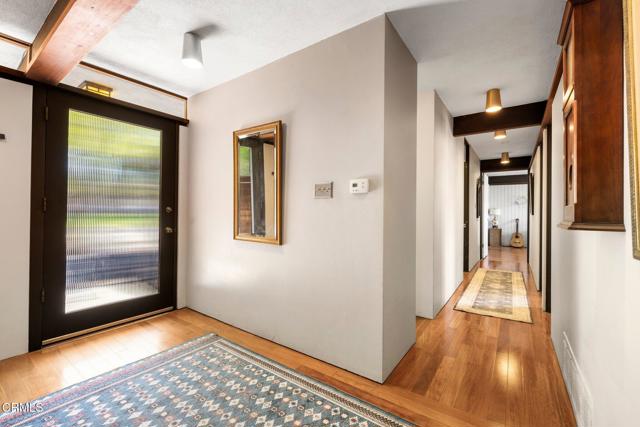 Designed by renowned architect Gordon Stice in 1961, this exceptional Mid-Century Modern home offers the perfect fusion of modern elegance and natural tranquility. Nestled among mature trees with breathtaking canyon and mountain views, the home exudes a sense of serenity, creating an oasis within the city.This 4-bedroom residence, including two luxurious bedroom suites, is a pristine example of architectural artistry, drawing inspiration from the Frank Lloyd Wright school of design. The open, flowing spaces are complemented by strong design lines and a seamless connection to nature. The home's gourmet kitchen is a chef's dream, featuring top-of-the-line Viking and Sub-Zero appliances, warm granite countertops, and ample custom cabinetry.The beautifully appointed Primary Suite includes a fireplace and a spa-like en-suite bathroom with a walk-in double-head slate and glass tile shower. The spacious living areas--featuring hardwood floors and a second fireplace--offer an inviting atmosphere perfect for both intimate gatherings and large-scale entertaining.The outdoor living spaces are equally impressive, with expansive decks offering panoramic views of the surrounding mountains and canyons, ideal for enjoying the tranquil surroundings or hosting memorable events.Thoughtfully updated with modern comforts, this home also boasts a newer roof and an energy-efficient solar panel system, ensuring both luxury and sustainability. Gordon Stice, a founding partner of the esteemed Pasadena architecture firm PWBS, imbued this home with a legacy of timeless design that continues to offer unmatched comfort and livability. This is more than a home--it's a retreat, a work of art, and an invitation to live in the beauty of Mid-Century Modern architecture.