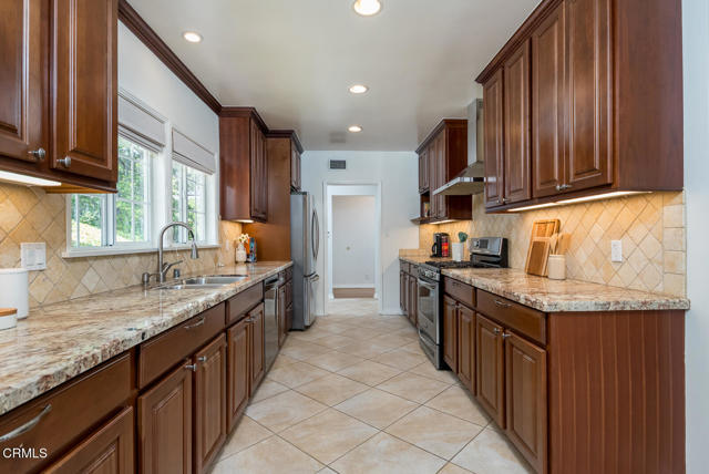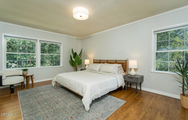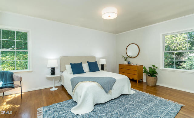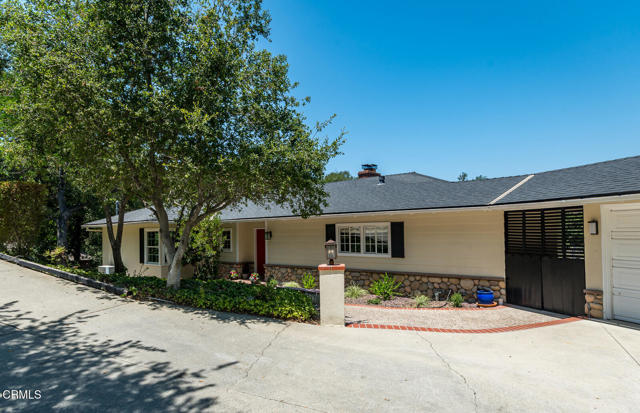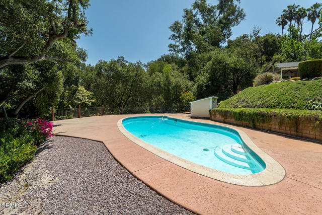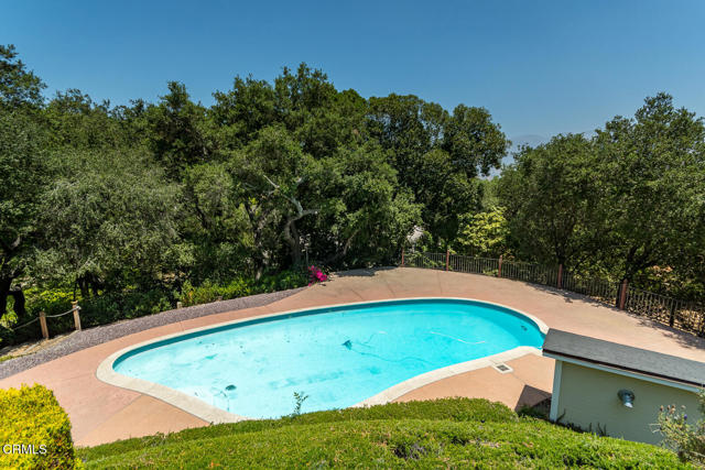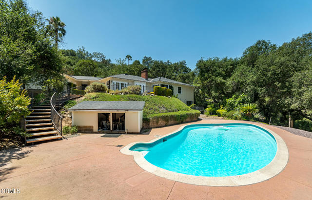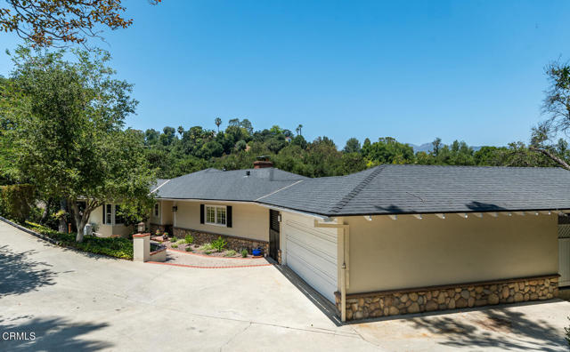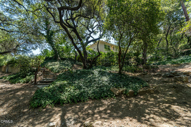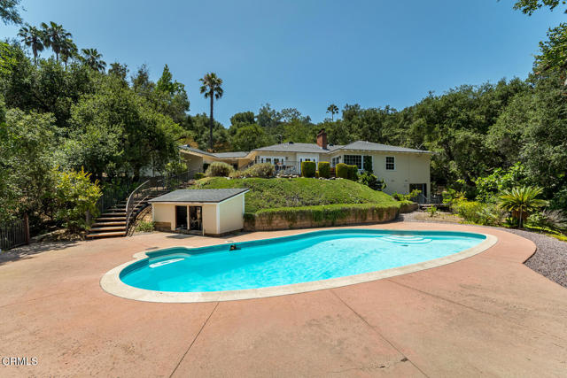 This sunny and light 1951-built traditional home sits on an absolutely beautiful 40,000+ sq ft Flintridge lot, providing the next owner a tremendous opportunity to expand on what is here and truly make it their own. The living room, family room, and dining room all overlook and open out to the deck, covered patio, pool, and expansive wooded grounds. The kitchen features laundry area and walk-in pantry, and updates that include granite countertops and stainless-steel appliances. Main level bedroom suite has updated full bath and walk-in closet. Spacious second bedrooms is steps away from updated 3/4 bath. Lower-level bedroom, updated 3/4 bathroom and office enjoy wooded views and seating area on private patio. Large paned windows and French doors throughout provided beautiful views from almost every room in the house. Two-car attached garage is just across covered breezeway from the kitchen. Covered patio currently used for ping-pong could make a great studio or other space. Swimming pool is easily accessed from the patio and deck as well as from lower private patio. Descanso Gardens-like setting with winding paths, mature landscaping, and treetop and mountain views. Incredible potential. Bring your ideas and your contractor.