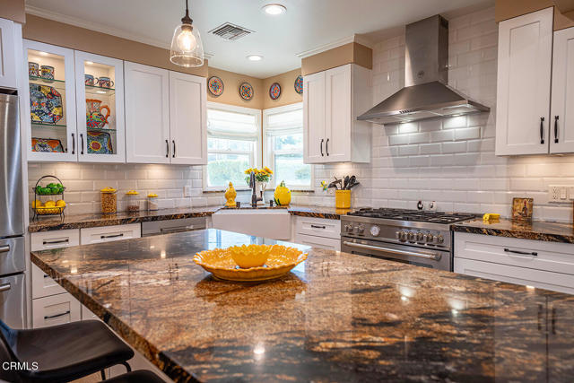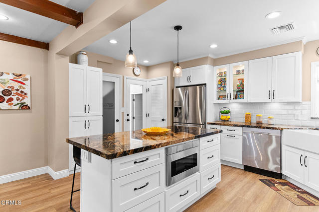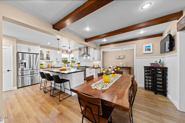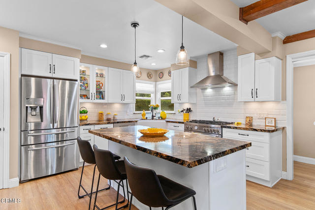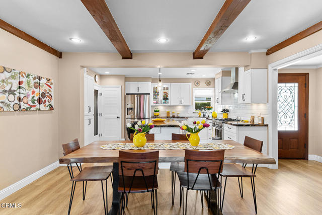 Your search is over! Nestled in the sought-after foothills of La Crescenta, this tastefully updated 4-bedroom, 2.75 bath home offers the perfect blend of modern comfort and convenient living. Upon stepping inside, you are welcomed by a charming entry that opens into a spacious dining room, featuring wood-beamed ceilings, wainscoting, and recessed lighting, a space that radiates warmth and hospitality. Open to this notable dining area is the show stopping fully remodeled kitchen including its large granite island with breakfast bar. A Bertazzoni stainless gas range and hood, farmhouse sink, pantry, built-in microwave drawer and indoor barbecue is a dream space for the passionate home chef. This dining-kitchen area is truly the heart of the home. Tucked nearby is a convenient laundry closet with Miele washer and dryer.Just beyond is the living room, perfect for entertaining, with a decorative corner fireplace and direct access to the expansive deck and rear yard. Also included on the main level are three well-sized bedrooms and two beautifully remodeled baths, offering space and comfort for family or guests. Upstairs, you will find a private primary suite retreat--a spacious haven with mountain views, sitting area, and updated en suite bath. The rear yard offers opportunity to enjoy al fresco dining under a covered patio or unwind in the above-ground spa, surrounded by a thoughtfully designed, low-maintenance yard that invites relaxation year-round. Other features include updated 200 Amp Electric service, Central Heat/Air, and updated dual pane windows throughout. Don't miss this rare, move-in-ready gem in La Crescenta--where style, comfort, and mountain charm come together to create the perfect place to call home.