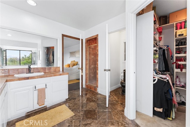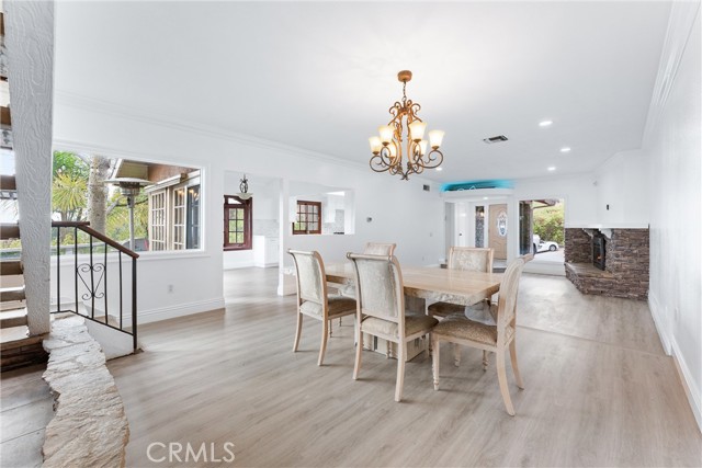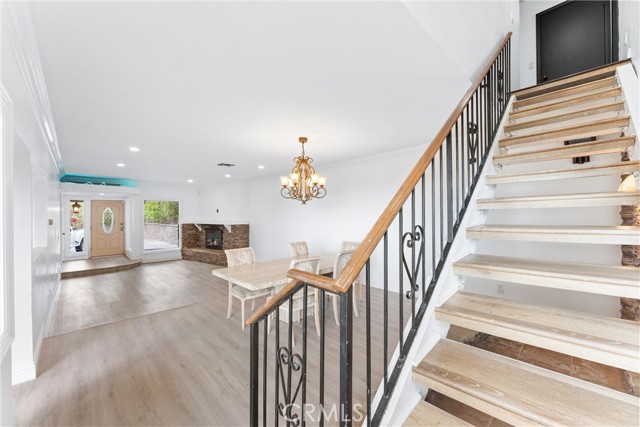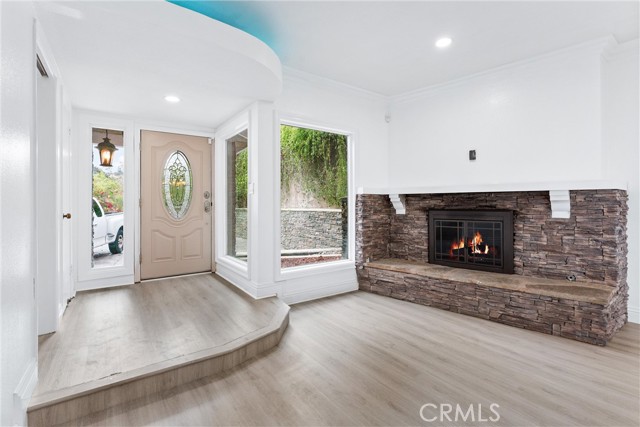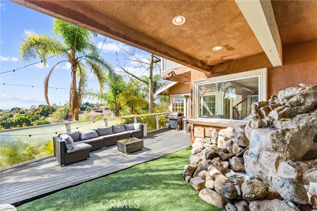 Welcome to 105 Reposado! This stunning corner lot, perched on the hillside, offers breathtaking views of Catalina Island, city lights, and the ocean. Enjoy multiple decks nestled among the treetops, providing a peaceful and natural setting. The owner has recently completed many upgrades, including new flooring and paint throughout, a newly remodeled kitchen with elegant marble countertops, a glass tile backsplash, new cabinets, and new appliances. Large windows frame picturesque views that can be enjoyed from inside or outside dining areas. The entry is open to the grand staircase, views and custom fireplace. A formal area that feels warm and cozy. There is a family room and an additional living space above the garage.This home boasts four bedrooms and three bathrooms, a spacious family room, and dedicated outdoor dining and seating areas. The luxurious primary suite includes a spa-like bathroom with a spa tub, a walk-in closet, and city light views to enjoy while relaxing. Above the garage, a separate living area with its own entrance, living space, fireplace, and bathroom is ideal for extended family or guests. It can be used as an office, game room, theater, or whatever you can imagine. The outdoor areas are perfect for enjoying the views and privacy, featuring an outdoor patio with a waterfall, and the upper level delivers a tranquil space. The main entryway with a custom door is at the top of the driveway, offering a sense of privacy and the beauty of the natural environment. Experience impressive curb appeal with a stacked stone driveway and pavers, lined with trees, leading you to a gated estate surrounded by lush landscaping.