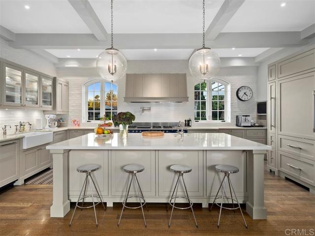 Built in 2013 to the highest standards, this exceptional home embodies timeless quality, design, and an A+ location, making it one of La Jolla's finest estates. Offering immeasurable pleasure, comfort, and inspiration, this private residence captures the essence of luxury living. Thoughtfully constructed on 2 of 3 parcels totaling nearly 1.4 acres, the fully gated property is surrounded by beautiful landscaping and mature hedges, ensuring privacy. With a California Traditional style that is barely visible from the street, this exquisite home features two above-grade levels. The main level includes a spacious living room, dining room, and family room designed by renowned designer Jeffrey Bilhuber for seamless flow and entertaining. There are also home offices located off the kitchen and primary suite. Pocketing screen doors create a seamless connection between indoor and outdoor spaces, including a covered patio off the family room that epitomizes La Jolla's beloved indoor/outdoor living experience. The upper level boasts an impressive primary bedroom suite with sitting areas, a fireplace, large shower, his and hers closets and toilets, and a private balcony with a therapeutic spa and fireplace. There are also 4 additional bedroom suites on this upper level, and a secondary primary suite on the entry level. Additional features of this remarkable home include a wine cellar, theater room with bar, extensive storage, and an 18+ car showroom that offers incredible flexibility for various uses such as a gym, golf simulator, recording studio, and/or bowling alley. The meticulously designed grounds include a large UV pool with underwater speakers, ample lawn and garden areas designed by Art Luna. There is also potential to build a pool house, sport court, or re-partition and sell or develop the land. A new home built on the annexed lot would also have ocean views from the second story. In-wall speakers, laundry facilities on both levels, bathrooms with Toto washlets, polished nickel Waterworks Plumbing fixtures with Speakman showerheads, heated floors, elevator access to all levels, and extensive smart home technology are just a few examples of the attention to detail and luxurious amenities that make this home so special.
