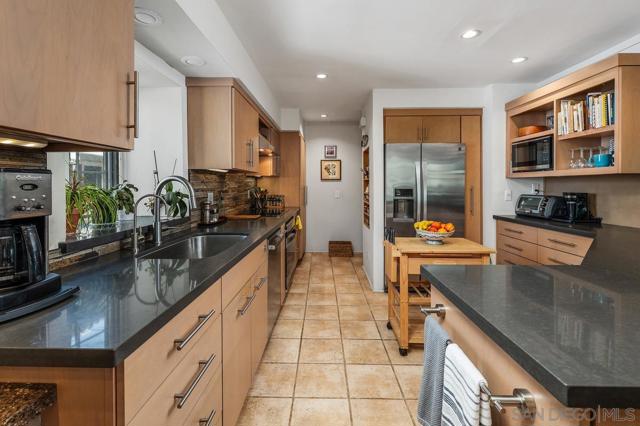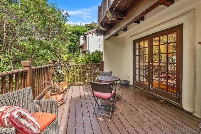 Perched on the quiet northwest corner of the resort-styled Villas Mallorca complex, this exceptionally private end-unit townhome enjoys forest-like views to the north and west. The home features a thoughtfully redesigned kitchen, large balcony off living/dining, vaulted ceilings in the bedrooms, natural light, & loads of storage space. Attached 2-car garage offers spacious laundry area and room for toys. Complex offers pool, spa, & lighted tennis court all amid luscious gardens. Conveniently located across the street from shops, restaurants, cinema, & fitness studios. Near beaches, UCSD, public transportation, & freeway access. The best of Villas Mallorca.