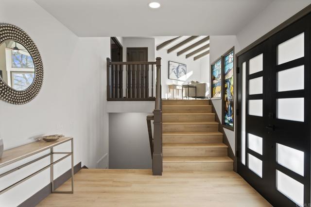 Discover the stunning charm of this completely remodeled Mount Helix estate, nestled on over an acre of meticulously landscaped grounds. This exceptional home features 6 spacious bedrooms and 4 modern bathrooms, perfect for multi-generational living or hosting gatherings. Experience luxury living with resort-style amenities, including a renovated pool and spa, a three-car garage, and two inviting fireplaces. Elegant details such as exquisite stained-glass windows, contemporary kitchen and bathrooms, and custom closets in every bedroom enhance the home's appeal, while the expansive walk-in pantry offers ample storage for all your needs. The main residence boasts over 2,900 square feet of living space, featuring 5 bedrooms and 3 bathrooms. In addition, the guest home provides a generous bedroom, bathroom, and a custom walk-in closet, encompassing an impressive 1,656 square feet. This remarkable property not only sprawls across more than an acre but also holds incredible potential for an accessory dwelling unit (ADU) or even a lot split for constructing a second home. With its own access to a side street below, this estate is ideally suited for extended family living or generating rental income. Seize this exceptional opportunity to own a truly unique and versatile property that embodies luxury and possibility.