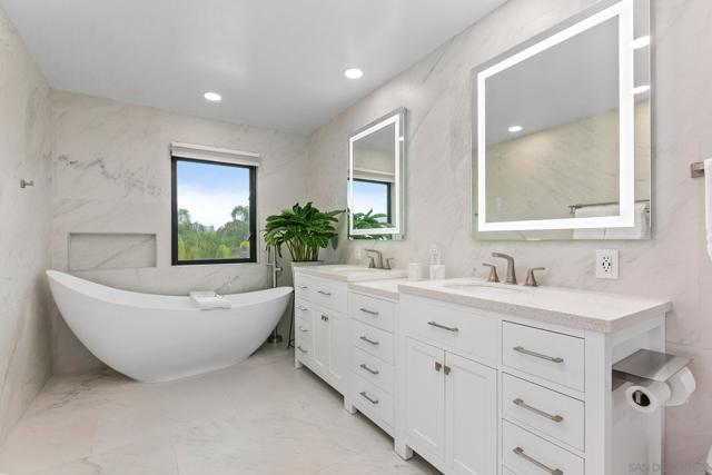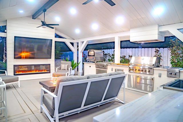 RE-IMAGINE: LIVING THE DREAM LIFE IN THIS LAVISH PRIVATE LUXURY ESTATE WAKING UP EVERY MORNING IN THIS OUTDOOR PARADISE IN THE COMFORT OF YOUR OWN BACKYARD. MASSIVE 70'X20' SALTWATER POOL, SHADED PAVILION WITH TWO FLOATING DAY BEDS AND FIRE FIT AT THE CENTER AND TWO BUBBLERS SIDE BY SIDE, THREE SPARKLING FIRE GLASS FIRE FITS AT THE SIDES THAT LOOKS STUNNING AND WARM FEELING ON COOL NIGHT OUTS SWIMMING. OVERSIZED SPA THAT FITS 16 PEOPLE VERY GOOD FOR RELAXATION AFTER HECTIC DAYS OF WORK AND MELT STRESSFUL AWAY, WITH SIDE AND BACK BUBBLERS ANF FLOOR JETS AND AN OVERFLOW INFINITY -STYLE FEATURE. A BIG OUTDOOR KITCHEN PAVILION WITH BUILT IN BBQ GRILL AND BAR LIKE STYLE SEATING. THIS PAVILION IS FULLY EQUIPPED WITH TWO MINI REFRIGERATORS, FLAT GRILL AND A STOVE. YOU CAN MOUNT YOUR BIG SCREEN TV ON ONE SIDE AND A BIG SPACE FOR A SOFA WHILE WATCHING. A FULLY PAID 58 - PANEL SOLAR ARRAY. EXPANSIVE FRONT DRIVEWAY THAT FITS 20 CARS. A THREE SMART GARAGE INCLUDE TWO TESLA EV CHARGERS AND A UNUQUE ONE CAR GARAGE THAT DRIVE THROUGH STALL WITH DOORS AT BOTH FRONT AND BACK ALLOWING VEHICLE ACCESS TO THE BACKYARD. INSIDE, A WHOLE-HOME SMART SYSTEM, MANAGES LIGHTING, GARAGE DOORS, LOCKS AND PENTAIRPOOL/SPA FEATURES. ENGINEERED WOOD FLOORS THAT FLOWS TOWARD THE EN TIRE HOME, COMPLEMENTED BY DUAL PANE WINDOWS AND DOORS THAT FRAME SERENE VIEWS LUXURY PRIMARY SUITE FEATURES A SPA-CALIBER BATH WITH STEAM SHOWER AND SMART SHOWER CONTROL CREATING THE ULTIMATE PRIVATE RETREAT. Unparalleled Mt. Helix Luxury Estate- 10732 Fuerte Drive Re- Imagine Resort Style Living on a private one-acre lot with this fully fenced and gated, 5 bedrooms, 4.5 bath, designed for exceptional privacy and comfort. A three-car smart garage includes two Tesla EV chargers and a unique drive through stall with doors at front and back, allowing direct vehicle accesses to the backyard. A fully paid 58-panel solar array ensures outstanding energy efficiency. INSIDE- a whole home smart system manages lightings, garage doors, locks, and Pentair pool / spa features. Soaring ceilings with skylights and elegant fixtures fill the interior with natural lights, while high-end engineered wood floors flow throughout the entire home, complemented by dual pane windows and doors that frame serene views. The chef kitchen show cases a 6 burner Viking gas range with oven, premium Viking appliances, a huge center island, custom cabinetry, a walk-in pantry--ideal for culinary enthusiasts. The luxury primary suite features a spa-caliver bath with a steam shower and smart shower controls creating the ultimate private retreat. The lush landscaping is a fruit lover's dream, featuring lemon, lime, orange, tangerine, avocado, mandarin, pineapple guava, mango, fig, nectarine, plum, and olive trees, along with vibrant flowering plants and swaying palms This Mt. Helix estate blends modern efficiency with timeless luxury ---your own private one-acre resort. Located just minutes from the heart of San Diego.