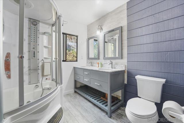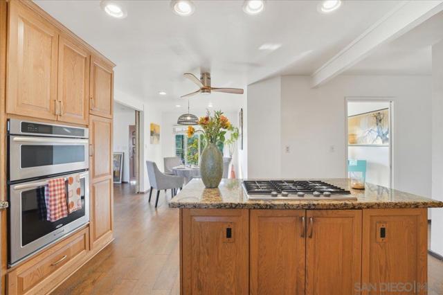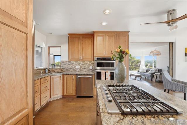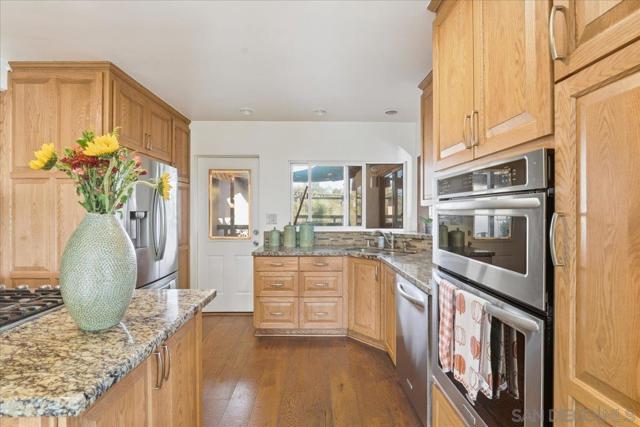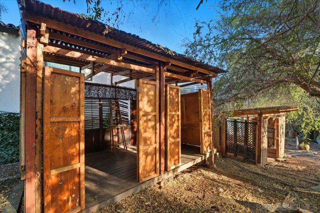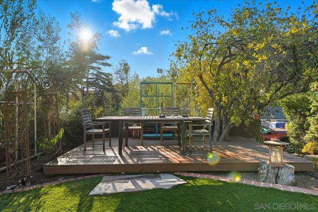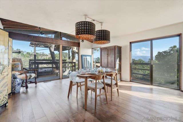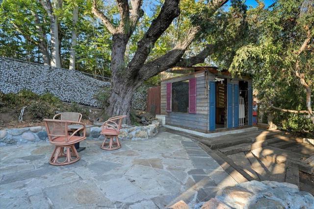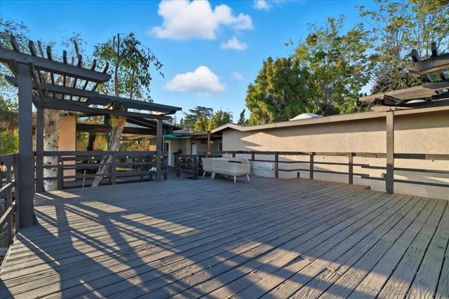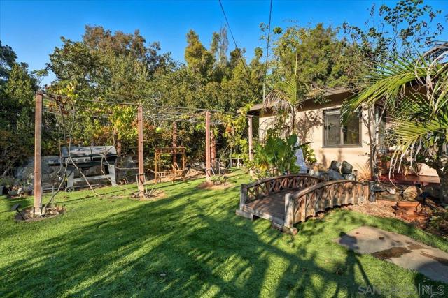 Exquisite Mt. Helix Estate — A Mid-century Nature Sanctuary Welcome to the Thao Son Tra Teahouse & Pond, a timeless Mt. Helix ranch masterpiece, where architectural elegance meets serene luxury. Featuring sweeping views framed by floor-to-ceiling windows, creating an open-concept design with treetop views. Set on an expansive ~20,800 square-foot lot, where east and west views meet serenity. The estate has palm trees and eucalyptus, filling the air with a calming fragrance. Immerse yourself in your own private oasis, relax on a swing, walk within your own misty park, or retreat to a sanctuary bungalow designed for ultimate tranquility. The property features a detached private guest quarter in-law unit just steps away with a separate bath, expertly landscaped grounds with ambient lighting, sheds, synthetic grass, and an enchanting gazebo. A serene pond graces the front yard, where the gentle sound of flowing water and the presence of a Buddha statue create a harmonious Zen ambiance. Inside, a mid-century fireplace and a gourmet open kitchen with granite counters, stainless steel appliances, double oven, and large stove are accented by indirect LED lighting, blending functionality with refined style. The expansive entertainment deck offers an unrivaled vantage point to take in panoramic vistas. With an 11-year-old roof, stucco exterior, and newly painted interiors, this residence harmonizes beauty and timeless craftsmanship. Experience this exceptional property in person, a rare sanctuary where luxury, nature, and peace converge. Buyer's agent to verify all information. Flexible floor plan with huge family room, private guest quarters in-law unit with its own bath and separate entrance, ideal for guests. Other features you would expect from a home like this: ceiling fans in most rooms, hardwood floors, dual pane vinyl windows in most rooms, and fruit trees.