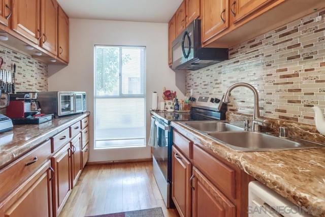 Step into style and comfort with this beautifully updated second-floor townhome in the desirable Lake Park community. Freshly painted throughout and enhanced w/elegant hardwood floors updated light fixtures & hardware, plus brand-new balconies and a new roof, this home is move-in ready. Enjoy a light-filled open layout, bright bedrooms both w/walk-in closets, & a kitchen w/classic wood oak cabinets. Take in Cowles Mountain views from your private balcony, just a short stroll to scenic Lake Murray. Water and trash included, VA & FHA approved, and surrounded by resort-style amenities for the ultimate La Mesa lifestyle. The community is rich w/amenities, including a community laundry room,car wash,5 pools,4 spas,a gym w/showers,sauna,tennis & pickleball courts,billiard & ping pong tables, & a clubhouse w/ a full kitchen.HOA fees cover trash & water, & the unit includes its own deeded parking spot,along w/designated guest parking areas.Spanning 24 acres, the Lake Park complex offers well-lit sidewalks, garden ponds w/fountains, & a community room for private events.Situated close to La Mesa Village, Grossmont Center, Mission Trails,a golf course, Grossmont College,SDSU,trolley stations, & freeways.