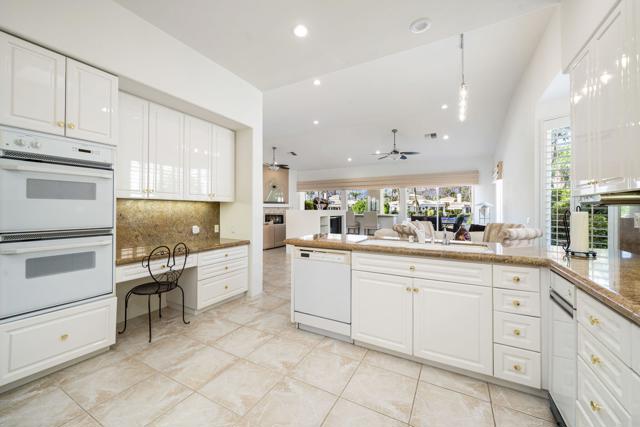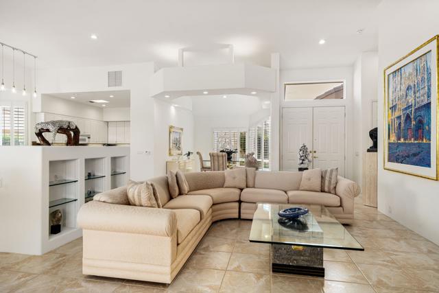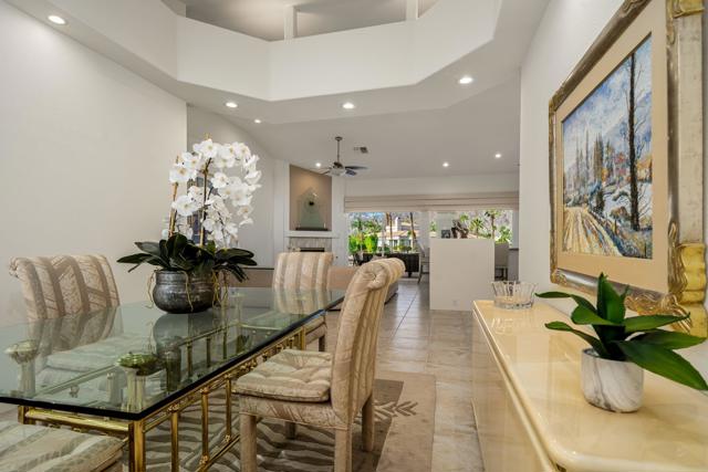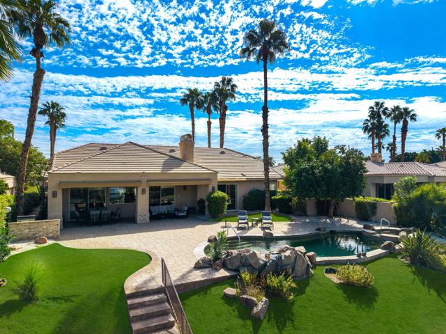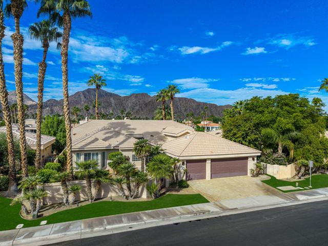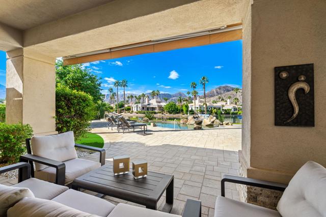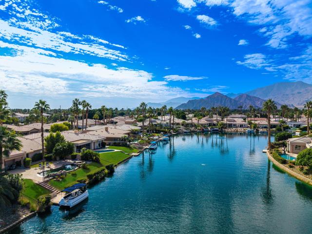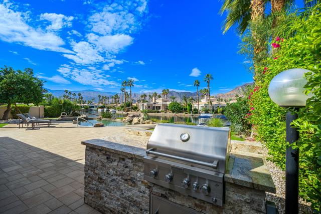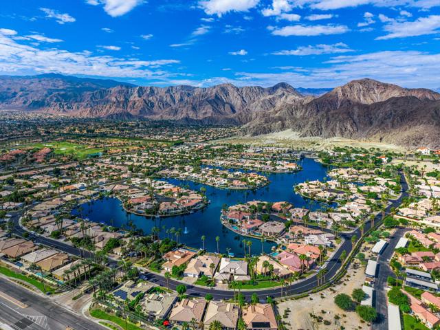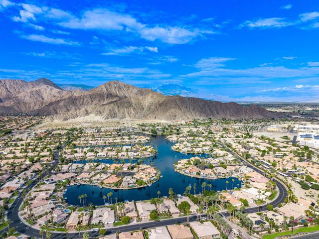 Welcome to your dream retreat in the heart of La Quinta, where luxury meets serenity. This beautifully refreshed lakefront estate offers unobstructed panoramic views of the majestic Santa Rosa Mountains and a breathtaking 27-acre private lake. Whether you are entertaining guests or enjoying a peaceful morning coffee, the setting is nothing short of spectacular. Step inside to discover a light and bright interior featuring a spacious great room floor plan, soaring vaulted ceilings, and elegant finishes throughout. The gourmet kitchen, formal dining area and a swanky bar with arguably the best views on the lake, make entertaining a breeze. The Primary Suite is a true sanctuary, offering two closets, vaulted ceilings, stunning lake views, private slider access to the patio, and a spa-like bath with dual vanities, soaking tub, and separate shower. Recent updates include fresh paint and designer lighting throughout, creating a crisp, modern feel. Step outside and take full advantage of the desert lifestyle with a private pool and spa, perfect for relaxing or entertaining. Fire up the built-in outdoor BBQ and dine alfresco while taking in the breathtaking views. And for the ultimate lakefront experience, enjoy your private dock and electric Duffy boat--ideal for sunset cruises or peaceful mornings on the water. Residents also enjoy access to resort-style community amenities, including pickleball, tennis, and a sparkling community pool. All this, just minutes from world-class golf, fine dining, shopping, and the very best the Desert has to offer.