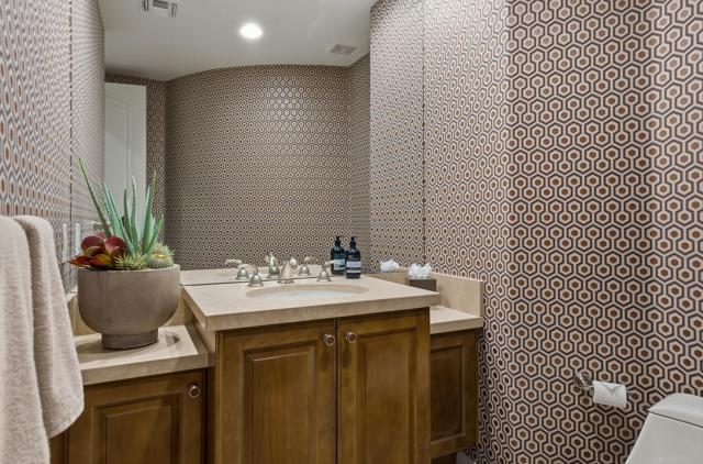 Fabulous gated location within the heart of La Quinta awaits you with this house! Open the gate and meander down the walkway to the beautiful arched entry. Foyer with soaring ceiling greets you. Formal Dining room is perfect for family or friends special events. Great Room flows into gourmet kitchen with circular granite counter, dry bar, and breakfast bar seating area. Wonderful area for entertaining! Casual dining area opens to the beautiful pool, spa area with mountain views plus delicious fruit trees. The Primary bedroom suite offers a large spa-like bathroom with walk-in shower, soaking tub and two separate vanities. A large walk-in closet adds to this retreat. Private attached Casita has a fireplace, coffee bar area and bathroom . Guest suite with bathroom is ideal for visitors. Efficiently designed 'work at home' space with built in desks and shelves is located in a quiet area of the house. Ideal for working away from the office. Laundry room with storage space makes this a perfect primary house or winter retreat.Two car garage, two new HVAC units, exterior trim painted and new electrical panel awaits the new owner! Do not miss the opportunity to own this pristine house that is being sold FURNISHED with few exclusions.