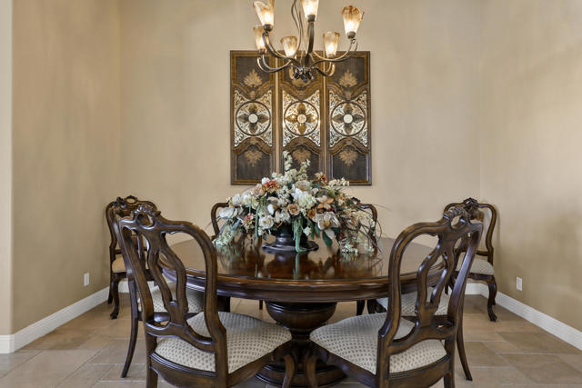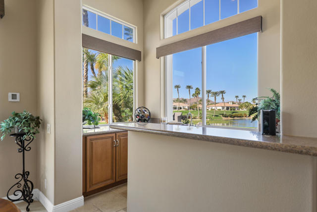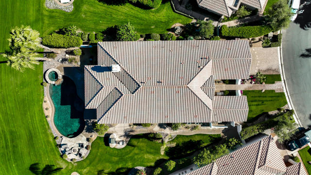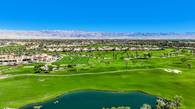 Premium private View lot!! Breath taking, Majestic mountain views, perched on top of a hill overlooking the 18th. hole, lake and serene waterfalls! This home is Immaculate in every sense of the word! Chiselled edge, Versaille pattern travertine flooring and high ceilings create the open airy feeling to bring the beauty of the view into this spectacular home. Living area with fireplace, Kitchen & dining area with wet bar are all open offering ease to entertain or just sit back and relax to take in the view. Vast side and rear yards are accessible by sliding glass doors from kitchen and den. Garage equipped with mini split AC unit. The resort like expansive patio with out door cooking area, pool & spa & fire pit are elevated overlooking lake, waterfalls to relax and enjoy the beauty of nature. Patio has misters for year round enjoyment. The guest suites are ensuites each with their own bathroom and located opposite side of the home for complete guest privacy. The Primary suite is located at the rear of the home for easy access to pool & spa and large windows to awake to the amazing views.