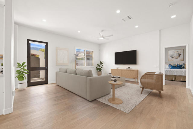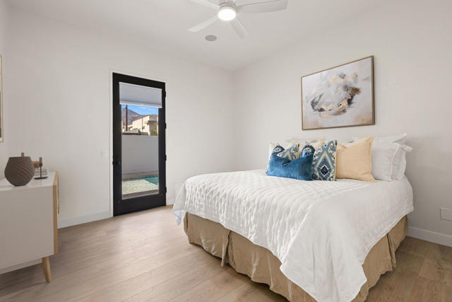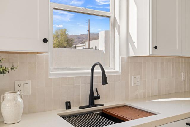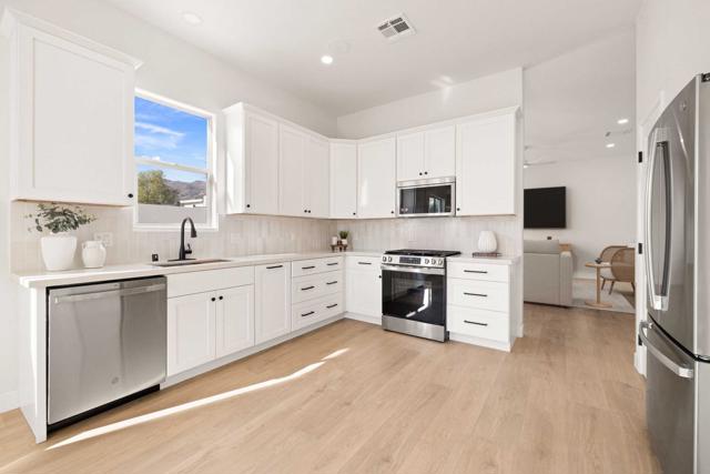 Mountain Views! This move-in ready Santa Fe-style pool home is full of charm and character, perfectly situated on a desirable corner lot in La Quinta Cove. Featuring 3 bedrooms and 2 bathrooms, this beautifully updated home boasts fresh interior paint, new flooring throughout, and new baseboards. The remodeled kitchen includes new soft-close cabinetry, Bianco Pearl quartz countertops, designer backsplash, and brand-new appliances. Both bathrooms have been upgraded with modern vanities and mirrors. Additional improvements include a resurfaced roof and pool, new water heater, and striking outdoor lighting for added ambiance. Connected to sewer and with no HOA fees, this property is just minutes from Bear Creek hiking trail and the vibrant shops and restaurants of Old Town La Quinta. Whether you're looking for a full-time residence, vacation getaway, or vacation rental--this home checks all the boxes! Please inquire about full upgrades list.