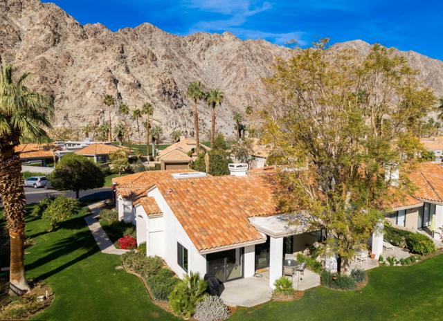 Welcome to this beautifully updated 3-bedroom, 2-bathroom home with breathtaking mountain views and a prime location right next to the pool! Located on hole #11 on the famed Arnold Palmer Private course, this light and bright unit has been completely refreshed with brand new dual-pane windows and patio doors, fresh interior paint, and a brand new A/C unit for year-round comfort and efficiency. The renovated kitchen features sleek new stainless steel appliances, and modern cabinetry--perfect for any home chef. Open-concept living room with fireplace and dining area flow effortlessly, offering a warm and inviting space to relax or entertain. Additional updates include upgraded bathroom countertops, ample closet space. The 3rd bedroom with closet is currently being used as a den with sleeper sofa. Step outside to your private patio and soak in the serene golf course backdrop. Furniture included.Pga West has it all with 6 golf courses, pickleball, fitness center and more. The HOA includes all landscaping, internet, cable, paint, earthquake insurance, roof, security and trash. This very popular Champion 3 floor plan is move-in ready with all the updates done for you!