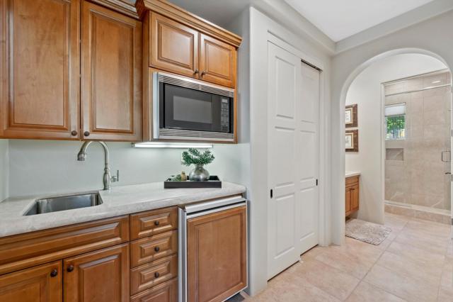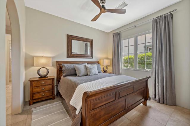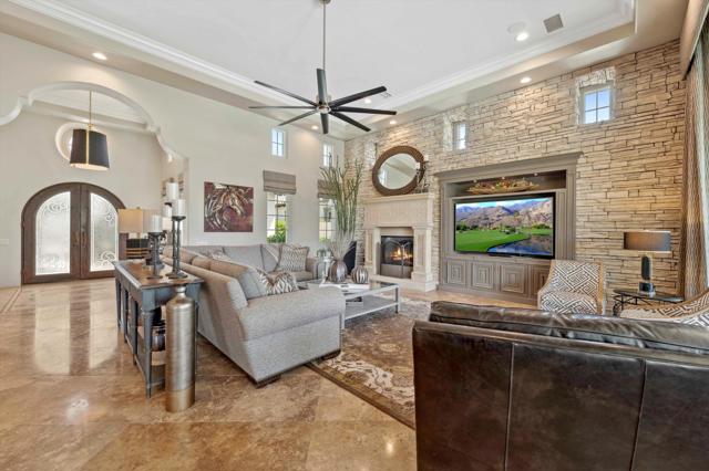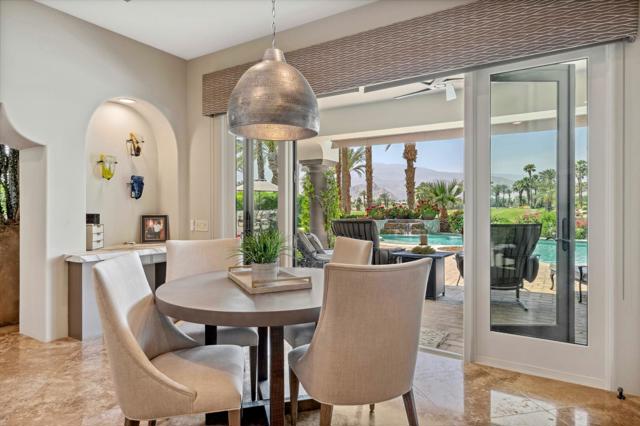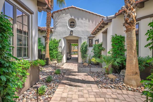 If you're searching for a luxurious home with unforgettable mountain, lake, and golf course views--plus extended privacy--this is the one! This exceptional designer furnished residence in Andalusia Country Club showcases the pinnacle of desert living with refined design, expansive indoor-outdoor spaces, and awe-inspiring surroundings. Step through a gated portico into a gorgeous courtyard adorned with a custom water feature and a detached guest casita--complete with its own fireplace, bedroom, bathroom, kitchenette, and private garage. Inside the main residence, you'll be greeted by soaring ceilings, an abundance of natural light, and a thoughtful open floor plan perfect for both relaxed living and elegant entertaining. Design highlights include travertine flooring, crown molding, and custom details throughout. The great room features impressive 12-foot Fleetwood sliding glass doors, seamlessly connecting to the outdoors and offering breathtaking views. The chef's kitchen is a culinary dream, boasting quartz countertops, a split-face stone backsplash, and top-of-the-line appliances, ideal for hosting with ease and style. The primary suite is a tranquil retreat with a cozy fireplace, custom built-ins, lavish spa-inspired bath, and direct access to the backyard loggia. Outside, your personal oasis awaits--featuring a putting green, custom pool, firepit, and a built-in outdoor kitchen with extended bar seating for effortless entertaining. Enjoy it all while taking in sweeping views of the Santa Rosa and Coral Mountains, a sparkling lake, and the meticulously maintained fairway that create a picture-perfect setting. Come live the life you've always imagined!