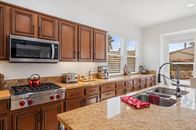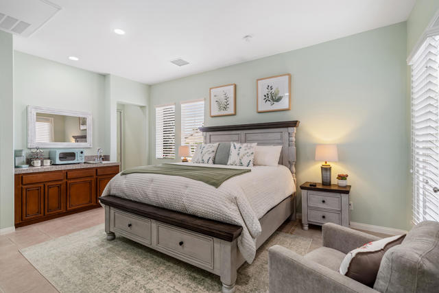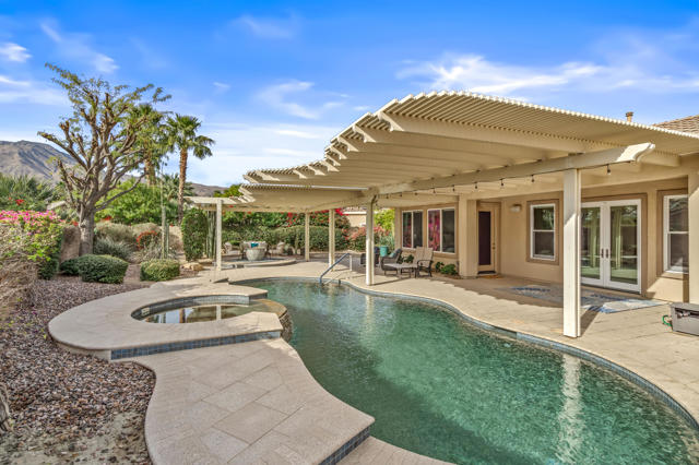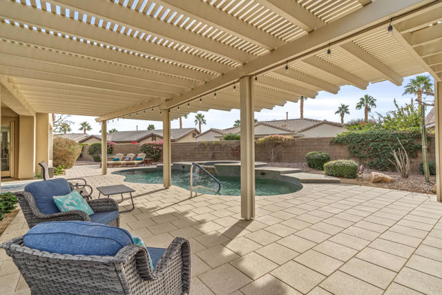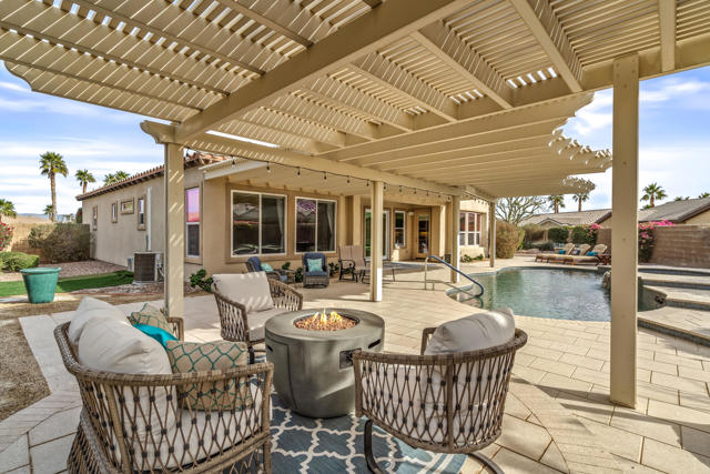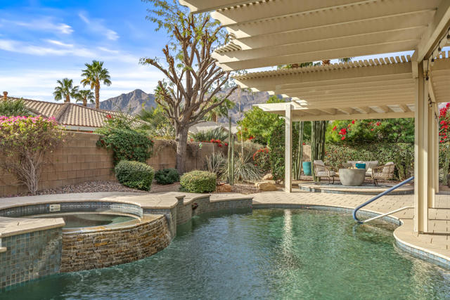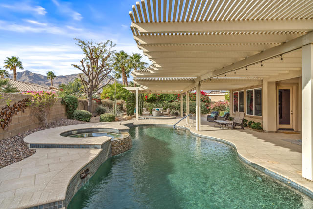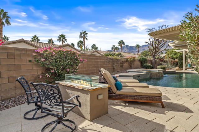 ****HUGE PRICE REDUCTION***!!!! SELLERS WILL INCLUDE FURNITURE IN THIS NEW PRICE!!! Beautiful HOME in the 55 + community of TRILOGY in South La Quinta!!! This 3 Bedroom, 4 Bath home with a CASITA has been meticulously maintained showing pride of ownership and is located on one of the LARGER LOTS in the community! The back yard is a true RESORT-STYLE ESCAPE with a remodeled south facing pool & spa, mountain views, two fire pits, several seating areas for your enjoyment, a ZEN/MEDITATION GARDEN, and a custom ALUMAWOOD PERGOLA. Seller's have recently painted inside of home, painted & coated garage floor, installed NEW GARAGE DOOR, garage has a TESLA charging station, a LIFE SOURCE home water system, remodeled guest bathrooms, and upgraded lighting, installed a NEW WOLF GAS COOKTOP, purchased all NEW FURNITURE, very tastefully done (furniture is now included), BRAND NEW WASHER/DRYER available for sale outside of escrow! TRILOGY IS A 55 and older community with a beautiful championship 18 hole golf course. The community has tennis-pickle ball, a gym with an indoor running track, arts & craft room, restaurant & a SPA! Don't miss out on this gorgeous home!!! Buyer to pay a one time Reserve Replenishment Fee (equal to 6 months of current HOA dues)