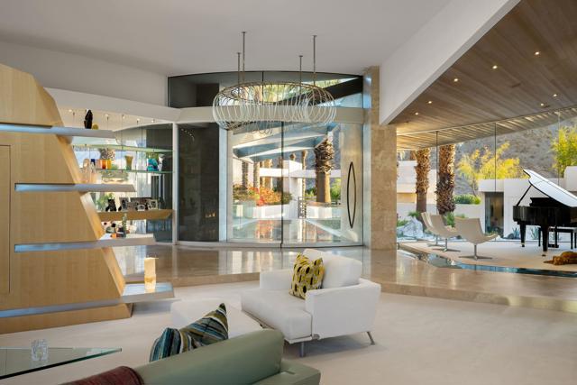 nestled within the prestigious enclave of The Quarry At La Quinta, stands a Guy Dreier masterpiece on a double lot (1.1 acres) with South views of holes 16th and 11th and majestic mountains. There are no houses on view now or ever. A stunning glass bridge leads you to the front door. The main house features 4 bedrooms with attached baths, unique powder room, study/office with a half bath, gym, formal dining with pocket doors to outdoor eating area. Gourmet kitchen with large island and attached service kitchen for large parties. Detached Casita with bedroom, bath and office/art studio. The newly landscaped Backyard offers large infinity edge pool, waterfall, firepit and fireplace. BBQ area. 3 car climate-controlled garage, storage room, golf cart garage, carport. WALLS OF GLASS enhance the amazing views from every rooms. New pool & spa heaters, lights, HVACs. Must see the home to fully appreciate how special this offering At The Quarry is. The Quarry is the only TOP 100 private Golf course in the Coachella Valley. Offered Furnished per inventory.