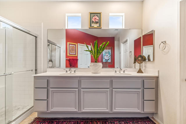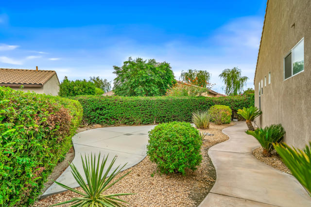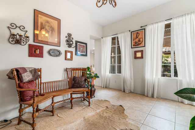 Welcome to Mira Flores in La Quinta. Discover the perfect blend of comfort and convenience with this 3 bed 2.25 bath home and extra den/office. This spacious floor plan offers the spacious kitchen and great room all in one area which includes a fireplace, ideal for both relaxing and entertaining as there are two sliders off the great room that flow to the front courtyard to provides the outdoor ambiance. In addition there is a private back area which is great for lounging. Enjoy this resort style living with access to the community pool while the low HOA dues keep this affordable. The neighborhood is conveniently located to restaurants, shopping, golf and so much more and includes a park area, great for walking pets and conversing with neighbors if you so choose. This home is ideal for full time or a desert retreat.