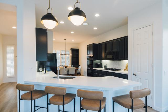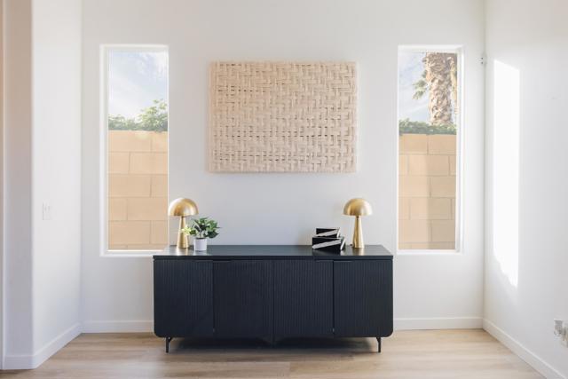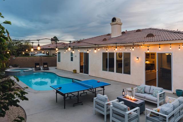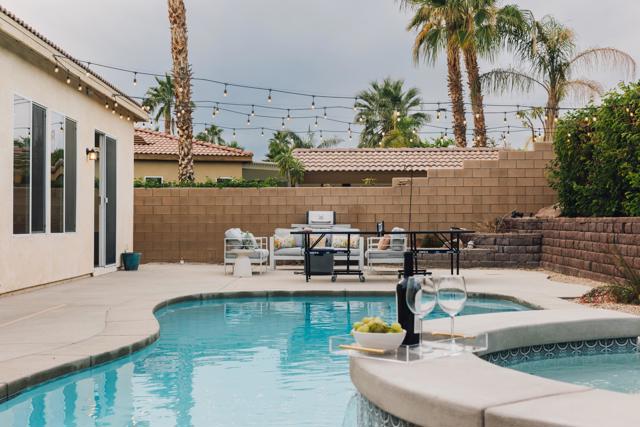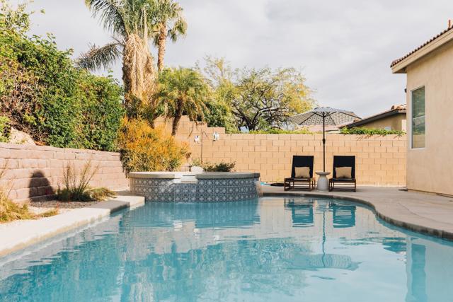 Discover this 2,350 sq. ft. residence in the sought-after gated community of Esplanade, offering a blend of modern design, flexible space, and resort-style amenities. With 5 bedrooms (including a versatile den that can easily be enclosed), this property adapts easily to a variety of living or investment needs.Inside, high ceilings and updated flooring create an inviting sense of space. The kitchen features sleek quartz countertops, ample cabinetry, and seamless flow into the open-concept living area designed for comfort and entertaining. The layout includes an expansive primary suite, a secondary en-suite bedroom, and two additional guest bedrooms that share a convenient access to a full hall bath.Step into the private backyard retreat with a newer pool and spa surrounded by mature landscaping, perfect for relaxing or hosting under the desert sky.Low HOA dues of $205/month include cable, Wi-Fi, gated security, and access to a community park. Optional furnishings are available for purchase outside escrow, making this a ready-to-enjoy or turn-key investment opportunity.