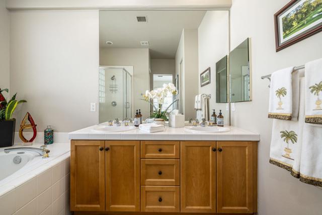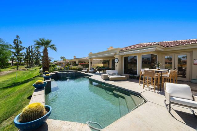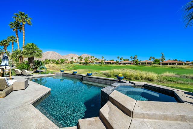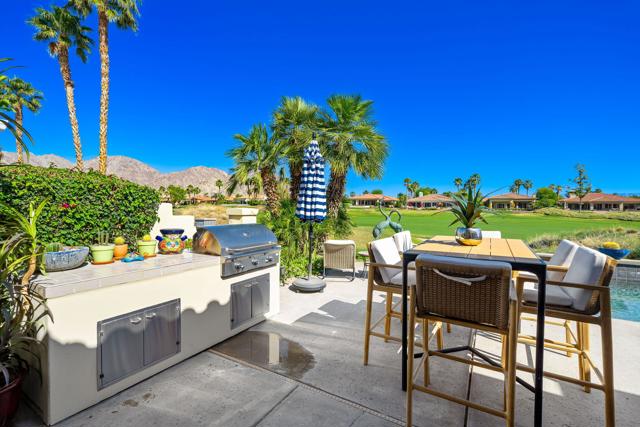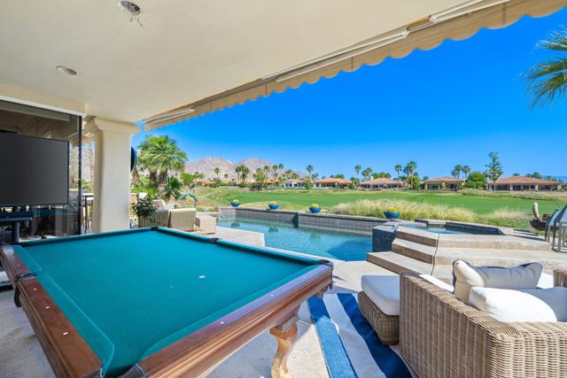 Luxury Living on the 12th Hole at Jack Nicklaus Private Course - PGA WESTThis beautifully appointed home sits on the 12th hole of the highly sought-after Jack Nicklaus Private Course at PGA WEST, offering breathtaking views and resort-style living. Enter through elegant mahogany French doors into a grand rotunda entry, leading to a spacious great room and a wraparound covered patio perfect for seamless indoor-outdoor entertaining.The interior is thoughtfully designed with custom paint, granite kitchen countertops, a menu desk, and premium KitchenAid and Whirlpool appliances. The open layout flows effortlessly into an elegant separate bar area, ideal for hosting gatherings in style.Step outside into your private outdoor paradise, complete with a Pebble Tec pool, spa, and jacuzzi, built-in BBQ, and retractable awning for year-round comfort and enjoyment.Additional Features Include: Freshly painted cabinetry, Built-in media cabinet, Upgraded surround sound system, Wet bar with granite countertops & wine refrigerator, California Closets custom garage storage, Built-in tool space, refrigerator & utility units, New washer & dryer,Sectional garage doorsThe home features dual master suites in the main residence, each offering space and privacy. A detached courtyard casita serves as a flexible guest retreat, currently set up as an office with a sofa bed, but easily accommodates a king-size bed. The casita also includes a full bath with tub and shower, built-in closets, and its own private entrance.This exceptional property embodies the upscale desert lifestyle PGA WEST is famous for. Don't miss this opportunity to own an entertainer's dream home in one of the desert's premier golf communities.