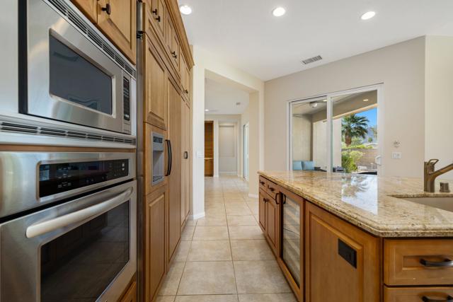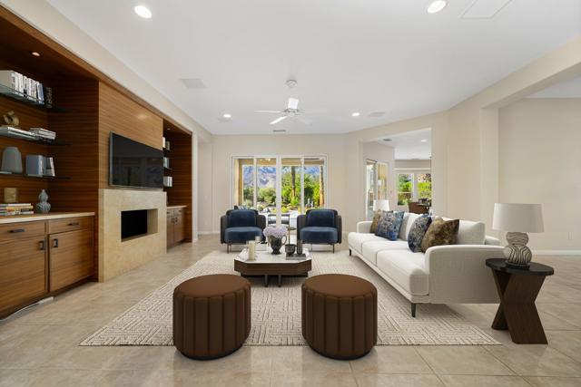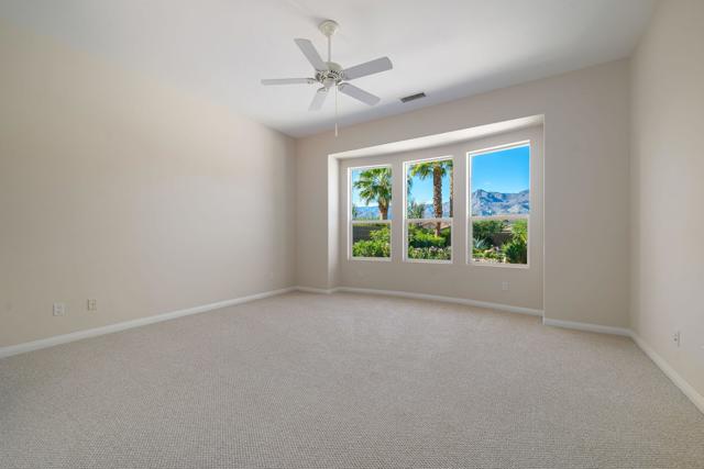 MOUNTAIN VIEWS & CASITA.Experience desert resort living at its finest in this hidden gem located in the coveted 55+ community of Trilogy at La Quinta. Nestled on one of the largest lots in the neighborhood (13,028 sq ft), this beautifully updated residence offers spectacular panoramic views of the Santa Rosa Mountains and an exceptional blend of indoor-outdoor living.The 2,482 sq ft home plus private casita features tall ceilings, an open-concept great room with fireplace, a formal dining room, sunny breakfast nook, and a separate den or office - easily a fourth bedroom. The gourmet kitchen is a chef's dream, equipped with top-of-the-line KitchenAid appliances, Sub-Zero refrigerator, custom cabinetry with pull-out shelving, and a spacious walk-in pantry.Luxurious details continue throughout - from the elegant powder room adorned with a sparkling chandelier, designer mirror, and onyx countertop with raised glass sink, to the newly installed carpet and freshly painted interior. Additional upgrades include a new garbage disposal, refreshed landscaping, and numerous improvements since the seller's purchase.Step outside to an entertainer's paradise: an expansive park-like backyard with covered patio, electronic retractable awnings, stone pavers, lush landscaping, carved-stone bubbling fountain, and raised firepit - all perfectly positioned to frame those stunning mountain vistas. The oversized lot offers ample room to add a pool or spa.The detached casita provides the ultimate guest retreat, complete with a kitchenette and full bath. A two-car garage plus separate golf-cart bay features an epoxy-coated floor and built-in storage.Trilogy at La Quinta residents enjoy resort-style amenities including a championship golf course, state-of-the-art fitness center, tennis and pickleball courts, pools, spa, and a full calendar of social activities.A rare, one-of-a-kind beauty - offered move-in perfect. Come experience the desert lifestyle you've been dreaming of!