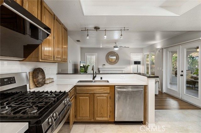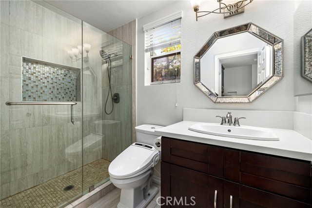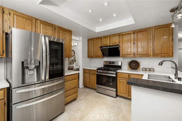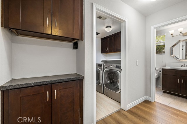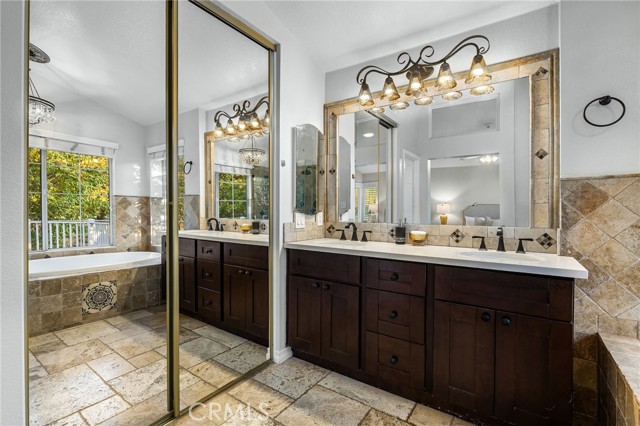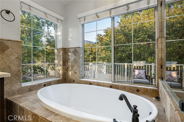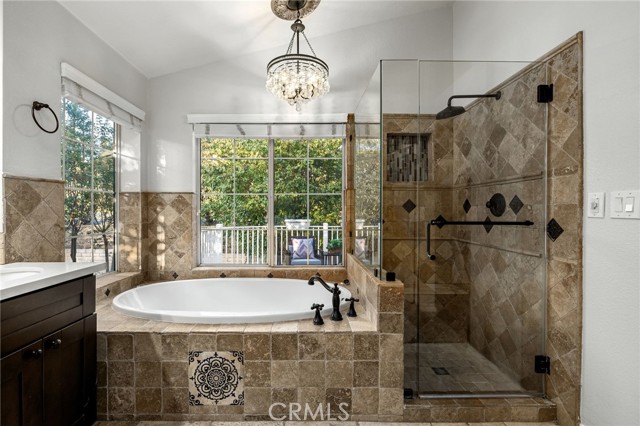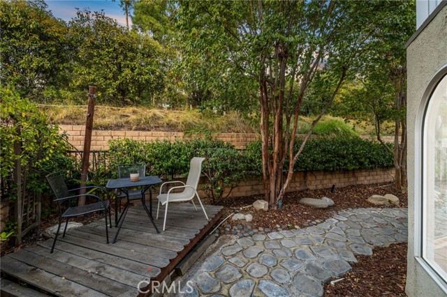 Remodeled home situated in a tucked lot of a quiet cul-de-sac located in the Emerald Ridge at Live Oak gated community. This home offers a long driveway leading to a two-car garage, landscaped front yard, and a covered front porch. Inside, enjoy soaring ceilings and a bright, open floor plan with a view of the center staircase and the living room featuring durable LVP flooring, large windows with plantation shutters, and an adjacent formal dining room with a chandelier and backyard view. The updated kitchen includes wood cabinetry, quartz countertops with full backsplash, stainless steel appliances, recessed lighting, and a breakfast nook, and is open to the family room. The family room has a fireplace with a mantel, windows with shutters, and access through glass French doors to a versatile space, ideal as a playroom, office, or additional lounge, that can remain private or open to the family room. Downstairs also offers a bedroom with double entry doors (currently used as an office), a remodeled bathroom with a custom tiled shower and updated vanity, a laundry room with cabinetry, and direct access to the attached two-car garage. Upstairs, the primary bedroom features a vaulted ceiling, double glass French doors leading to a balcony with mountain and greenbelt views, and direct access to the bathroom. The bathroom offers travertine tile in a versailles pattern, dual sinks, a frameless glass shower, separate tub with greenbelt views, and a walk-in closet with mirrored doors. Two additional bedrooms and a remodeled hall bathroom complete the upstairs. The backyard is set against the greenbelt with no direct neighbor, custom stonework, various trees, planters, a small wood deck, a stone fountain waterfall, and two side yards. The HOA offers a pool, spa, and an RV storage area for residents nearby.