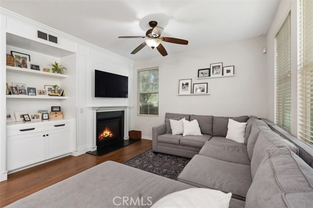 This tastefully updated, detached home is set on a private lot backing to a lush greenbelt in the sought-after Tarleton neighborhood. The open floor plan offers 3 bedrooms, 2.5 baths, and a flexible downstairs room ideal as a formal dining room, office, or playroom. The light-filled main level features gorgeous laminate wood flooring, a remodeled kitchen with stainless steel appliances, granite countertops, and a breakfast bar that opens to the dining area and family room with a cozy fireplace. Upstairs, a spacious loft provides the perfect study or lounge space. The primary suite is a true retreat with panoramic greenbelt views, an attached office nook, and a spa-inspired bathroom recently updated with a custom vanity topped with white counters, dual sinks, walk-in closet, soaking tub, and separate frameless glass shower. Enjoy outdoor living with a private oversized patio, plus a generous front deck ideal for entertaining or relaxing. Ladera Ranch residents enjoy resort-style amenities including water parks, multiple clubhouses, pools, tennis courts, scenic trails, and award-winning schools—all just steps from your door.