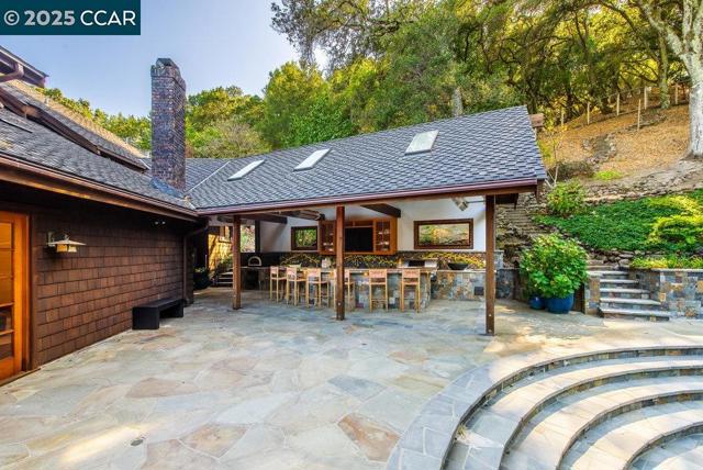 Welcome to 1 Scenic Lane in Lafayette—a spectacular 2.5+ acre estate offering privacy, serene surroundings, and the very best of California living. Just minutes from downtown Lafayette, BART, and top-rated schools, this property perfectly blends luxury and lifestyle. The resort-style backyard is a true showpiece with a fully equipped outdoor kitchen and bar (gas grill, cooktop, pizza oven, tandoori, fryer, refrigerator, dishwasher, sinks, heaters, and fans). Entertain by the sparkling pool with spa, waterfall, and beach entry, enjoy the sport court, or relax by the gas firepit. Unique features include a custom dog house and direct access to the Lafayette Reservoir Rim Trail for hiking and biking. Inside, the home boasts a chef’s kitchen with center island, dual gas ranges, pantry, and sunny breakfast nook opening to a family room with vaulted ceilings and skylights. The primary suite retreat offers a sitting area and walk-in closet. Additional spaces include a library sitting area, home office with Mt. Diablo views, home gym, art/hobby room, and garden-florist room, all off the three-car garage. A private sanctuary with resort amenities, this Lafayette estate is truly one-of-a-kind.
