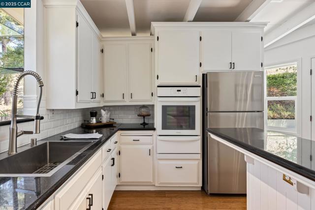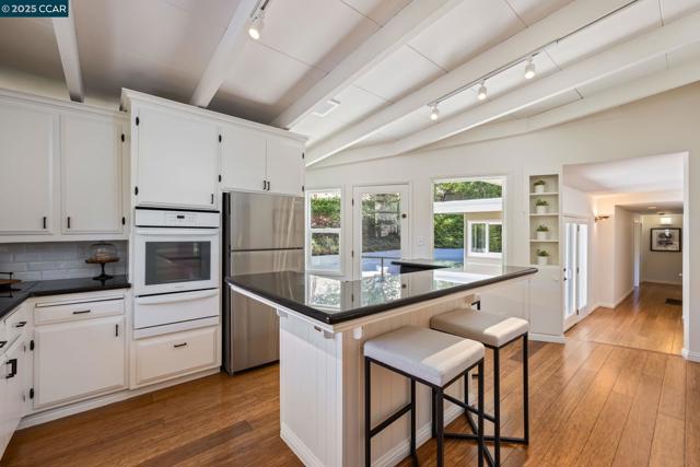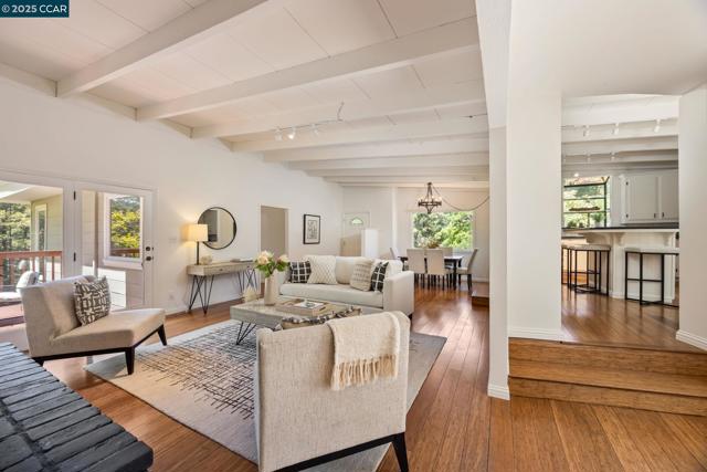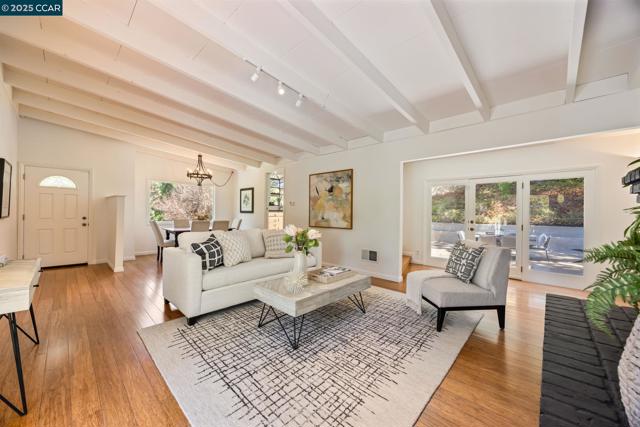 Modern retreat with views, light, and luxury in the heart of Lafayette’s coveted Reliez Valley! Thoughtfully upgraded, this home offers vaulted ceilings, sunlit living spaces, and views from every room - from rolling hills to gorgeous trees. The chef’s kitchen is the heart of the home, featuring a gas cooktop island, granite countertops, white cabinetry, and garden window. French doors on either side of the house open provide a great indoor outdoor connection to a spacious deck and a large patio, perfect for entertaining or relaxing outdoors. Bamboo floors flow throughout the main level with a spacious great room, two primary suites, two additional bedrooms, and 3 full bathrooms. Downstairs offers in-law potential or flexible space for guests, work, or play. The expansive lot also includes a level lawn, play areas and room to add an ADU if city permits. Enjoy Lafayette’s top-rated schools and a gorgeous setting in the lovely Reliez Valley!