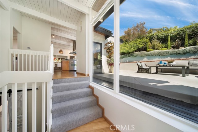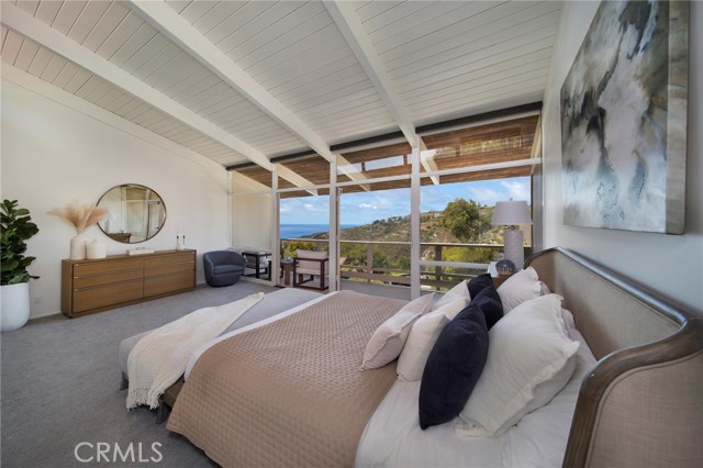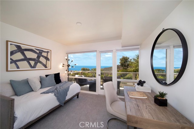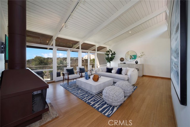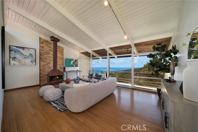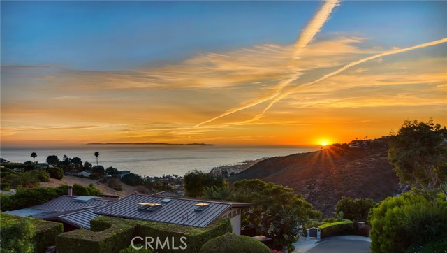 Commanding one of Laguna Beach’s most breathtaking vantage points, this rare mid-century modern estate unfolds with sweeping white-water vistas that stretch beyond Catalina to San Clemente Island. A secluded hillside setting elevates its presence, while appx. 2,430 square feet of inspired design and modern comfort create a coastal retreat of uncommon distinction. Upon entry, a private lower wing reveals two spacious bedrooms, a shared lounge, direct patio access, and a beautifully designed bath where vintage-inspired tile meets contemporary elegance. Ascend to the main level and discover a gourmet kitchen with granite counters, stainless steel appliances, and custom cabinetry that flows seamlessly into the dining area, enriched by a striking colored glass window. Floor-to-ceiling windows and soaring ceilings frame the living room, where a dramatic wood-burning fireplace anchors the space and glass doors open to an expansive terrace with unforgettable ocean panoramas. Outdoors, resort-style living awaits with a sparkling pool and spa, lush lawn, and multiple terraces designed for sunset dining, entertaining, or quiet reflection. The upper terrace presents potential for an ADU, adding flexibility for a private guest suite or detached office, all set against extraordinary coastal views. Mature landscaping, tree-lined privacy, and a spacious two-car garage complete this timeless mid-century modern sanctuary—an estate that embodies the true essence of Laguna Beach living.