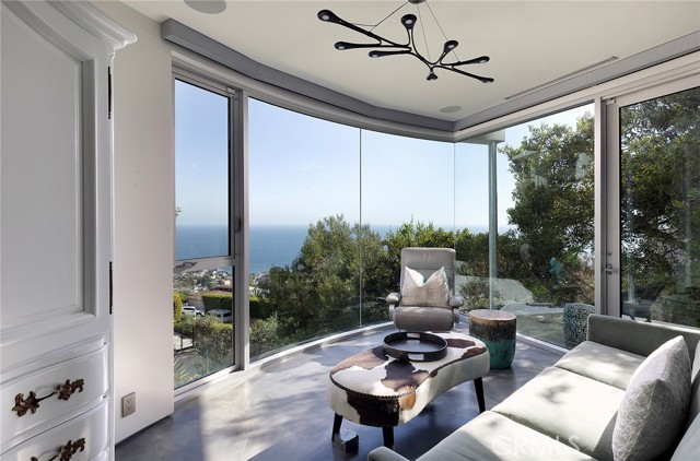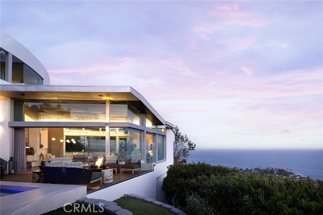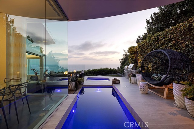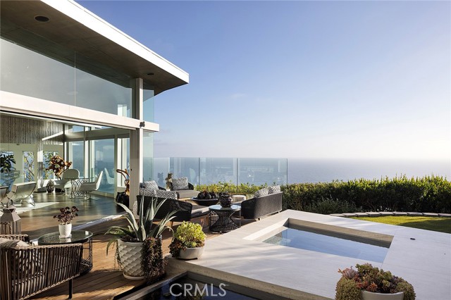 Architecturally Significant Ocean View Modern In the Sky – Laguna Beach Perched atop one of Laguna Beach’s most coveted vantage points, this architectural tour de force masterfully designed by acclaimed architects Horst Noppenberger and Paul McLean and built to exacting standards by Prestige Builders redefines coastal luxury living. Showcasing unparalleled 180-degree ocean views, this gated estate captures breathtaking vistas spanning the full coastline, both north and south arguably the finest in all of Laguna Beach. A bold expression of contemporary design, the residence rises nearly 60 feet from floor to rooftop, evoking a sense of floating above the ocean below while offering complete privacy and jaw-dropping views from every room. The dramatic entry sequence, defined by monumental vertical white concrete walls and a stone driveway that curves to a crescent-shaped entry, sets a striking tone of sophistication upon arrival. Designed to maximize the immersive ocean experience, the interior blends a refined material palette of custom hand-troweled epoxy flooring with hand-finished oak, creating a warm, minimalist interior that flows effortlessly throughout. Floor-to-ceiling glass and automated disappearing Fleetwood doors seamlessly connect expansive interiors with sun-soaked terraces and a negative-edge pool and spa framed in stone. Elevating the art of home entertainment, the residence features a state-of-the-art theater, full bar, and temperature-controlled wine cellar creating the ultimate environment for hosting friends and family. At the heart of the home, the gourmet kitchen features Poggenpohl cabinetry, a glowing Cristallo quartzite island, Miele and Gaggenau appliances, and a fully equipped butler’s kitchen blending function with refined design for both everyday living and elevated culinary experiences. Smart home technology powered by Control4, including automated lighting, climate control, and a comprehensive security system, enhances ease and peace of mind. Crowning the home, the penthouse-level primary suite spans the entire fourth floor, offering sweeping ocean views, dual walk-in closets, Poggenpohl cabinetry, and an oversized soaking tub for two. An oversized 3.5-car garage, private elevator, direct access to preserve trails, and proximity to Newport Coast, Fashion Island, and John Wayne Airport round out this exceptional offering.