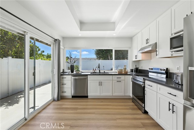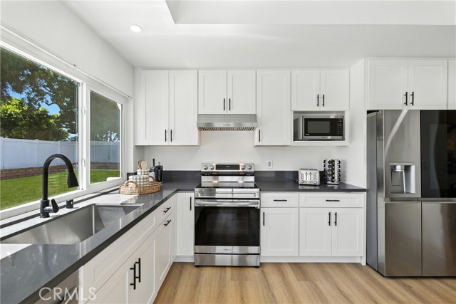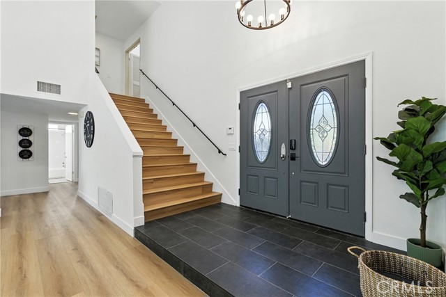 Discover a rare blend of sophistication and comfort in this beautifully reimagined estate nestled in one of Laguna Hills’ most sought-after neighborhoods. Set on a meticulously landscaped 7,100 sq ft lot, this 4-bedroom, 3-bath home spans over 2,200 sq ft of thoughtfully curated living space—where classic craftsmanship meets modern elegance. Originally built in the 1970s and now fully transformed, the residence boasts an open-concept design filled with natural light, high-end finishes, and an effortless indoor-outdoor flow. A downstairs bedroom and full bathroom offer ideal flexibility for multigenerational living, a home office, or hosting guests with ease. The main living areas are flooded with sunlight through expansive dual-pane windows and sliding doors, while recessed LED lighting sets the perfect mood throughout. The gourmet kitchen is a showstopper—featuring sleek grey stone countertops, white shaker cabinetry, and top-tier stainless steel appliances—designed to inspire both everyday meals and entertaining alike. Upstairs, the spacious primary suite offers a peaceful retreat with a private balcony, perfect for savoring your morning coffee or unwinding at sunset. The spa-like ensuite bathroom features dual vanities, a walk-in glass shower, and custom finishes that elevate the everyday. Beyond the stunning interiors, this home delivers a lifestyle of true convenience and prestige. Located near top-rated schools, luxury shopping, fine dining, equestrian centers, and scenic trails, you'll enjoy easy access to John Wayne Airport, major freeways (I-5 and I-405), and the world-renowned beaches of Laguna. From its elevated design to its prime location, this is more than just a home—it’s an invitation to experience the best of Southern California living.