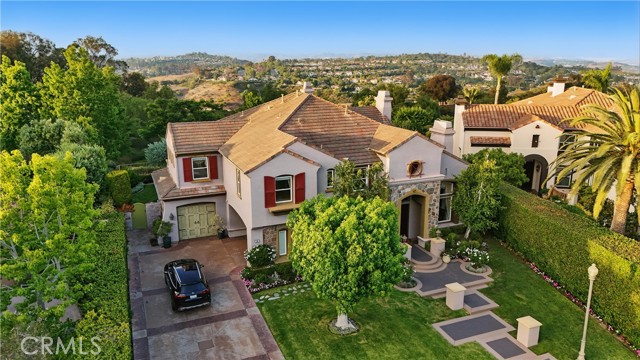 Welcome to 18 Asilomar Road, a beautifully customized estate nestled in the prestigious guard-gated enclave of Ocean Ranch, along the famed French Riviera of California. Tucked away on a quiet cul-de-sac in Laguna Niguel, this 5-bedroom, 4.5-bathroom residence offers over 4,200 square feet of refined coastal living. The grand primary suite upstairs is a true sanctuary, featuring dual walk-in closets and a spa-inspired bathroom with a soaking tub, walk-in shower, and dual vanities. Downstairs, a generously sized junior suite with its own full bath and walk-in closet provides the perfect layout for guests, multigenerational living, or a private home office. Designed with both everyday comfort and upscale entertaining in mind, the gourmet kitchen showcases an oversized center island, walk-in butler’s pantry, and double ovens. Elegant Brazilian hardwood and marble flooring, soaring ceilings, and four fireplaces create an atmosphere of timeless sophistication. Step outside to your private resort-style backyard with a built-in BBQ, outdoor fireplace, spa, and sweeping views of Saddleback Mountain. Residents enjoy exclusive Ocean Ranch amenities: a resort-style pool, spa, sport court, and playground — all minutes from Dana Point Harbor, the Waldorf Astoria, Ritz-Carlton, world-class golf, and award-winning schools.
