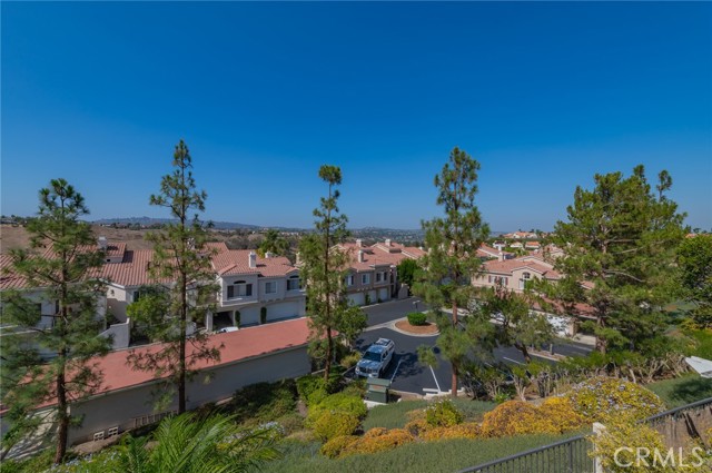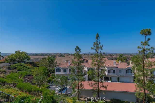 Welcome to this bright and inviting home in the desirable Costa Brava community, offering open space, natural light, and sweeping panoramic views. The spacious living area features vaulted ceilings and connects seamlessly to the dining room and kitchen, creating an easy flow for everyday living and entertaining. The main floor includes a comfortable primary suite with a private bath and ample closet space, plus a secondary bedroom perfect for guests or family. Upstairs, the versatile loft with its own full bath can serve as a third bedroom, office, or flex space. Enjoy the large private balcony ideal for outdoor dining or relaxing while taking in the view. Additional features include an attached one-car garage with direct access, a detached garage, Nest thermostat and sensors, plantation shutters, and ceiling fans. Costa Brava residents enjoy a pool, spa, and playground, with nearby trails around Laguna Niguel Lake and Aliso & Wood Canyons Park. Conveniently located near shopping, dining, beaches, and major freeways, and with optional membership to The Club at Rancho Niguel offering tennis, pickleball, gym, and more—this home combines comfort, function, and the best of South Orange County living.