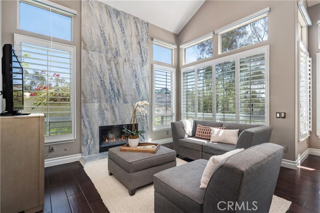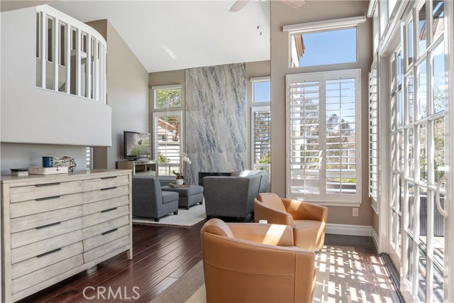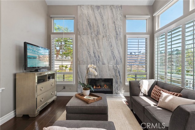 Live the good life in the coveted gated community of Siena and fall in love with this OPENED UP concept home that exceeds expectations! UPGRADED THREE BEDROOMS (one downstairs with full bathroom) plus LOFT is ideally located in the community on a CORNER LOCATION and has exquisite finishes of hardwood and porcelain tiled floors, Carrara marble, and impressive windows that face a stunning view of hills, nature and gives you exceptional privacy! Right when you walk in through double glass doors, you are swept away by the soaring ceilings, gorgeous tiled to the ceiling fireplace and ceiling height windows! The kitchen is impressive and is open to living an indoor-outdoor lifestyle that is spacious, with a gorgeous Carrara marble countertop and backsplash, plus modern GE Monogram Stainless Steel appliances to include dual ovens, dishwasher, wine refrigerator, and a 5-gas burner stove! Primary bedroom has vaulted ceilings and dual doors that draw you to the deck that is perfect for coffee and views in the morning! Spa like bathroom has an extra-large shower in Carrara marble, stunning subway tile on the surrounding walls, and a stand-alone soaking tub plus shaker dual sink vanity with Carrara marble countertops! Upstairs the third spacious bedroom is en-suite with its own bathroom with marble showered/tub details and countertop! Garden oasis beckons enjoyment with a large patio under a pergola and grassy area that wraps around the corner of the home capturing hillside and nature views! Other noteworthy upgrades are newer Lenox AC, shutters, water softener and more. Gated Siena sits within coveted coastal Marina Hills and has its own pool/spa, front yard maintenance, however Siena residents also get to enjoy the main Marina Hill's clubhouse, Jr Olympic pool, tennis and pickleball courts, bocce ball and parks close by! And do not miss the ease in proximity to the Salt Creek trail to hike/bike to the Waldorf Hotel and Salt Creek beach! Don't miss out on living the good life of Siena!