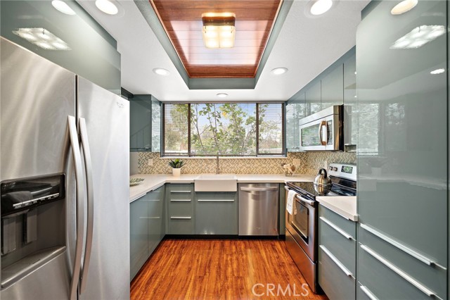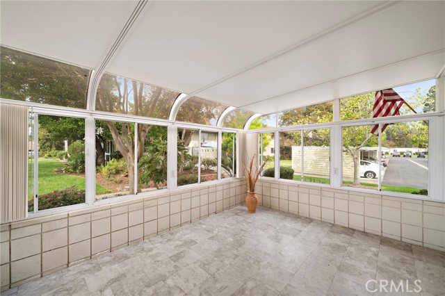 Stunning Seville floor plan wth 2 bedrooms, 2 bathrooms, loft and an enclosed patio provide lots of space. This coop is located in the prestigious age 55 and over community of Laguna Woods. With approximately 1,342 sq. ft., this home features a main floor bedroom and bathroom, a bedroom and bathroom upstairs plus a large loft. Some of the many features include: WOOD look flooring - MINI SPLIT A/C and HEAT - INSIDE LAUNDRY - SHUTTERS - REMODELED KITCHEN - REMODELED BATHROOMS - ENCLOSED PATIO - LOFT. This home has an open floor plan, offers large windows and a soaring vaulted ceiling. The living room has a sliding door to the enclosed patio. The beautifully remodeled kitchen has gorgeous cabinets, quartz countertops, custom backsplash, recessed lighting, stainless appliances and a farm style sink. The downstairs bedroom has a large window. The downstairs bathroom has been remodeled with a tile shower and modern vanity. The laundry is conveniently located downstairs as well. The spacious loft overlooks the dining and living rooms below. There is room in the loft for an office, seating area, hobby space or den. The upstairs bathroom has dual sinks, dressing table and a custom tile shower/tub. There is even a chair lift if you do not want to take the stairs. NO ONE ABOVE or BELOW. Laguna Woods is one of the most prestigious 55+ communities in Orange County. In Laguna Woods you have access to: bus system around the community & to area shopping, restaurants, medical facilities; 5 pools & 4 hot tubs; golf, tennis, library, 7 clubhouse, 200+ clubs, 3 fitness centers, theater, horse back riding/stables, garden centers, basketball, card rooms, billiards, bocce ball, Emeritus classes & more!