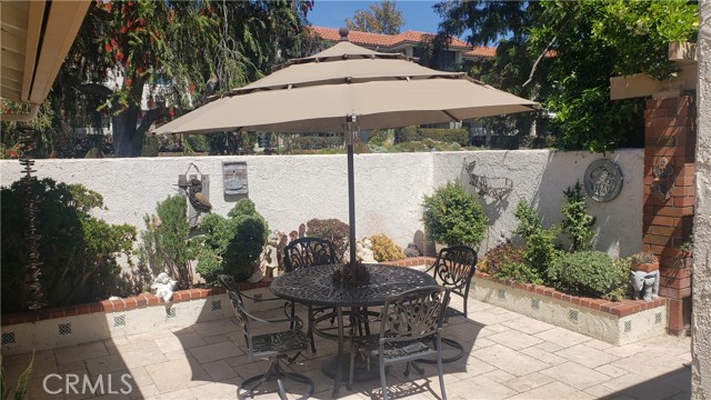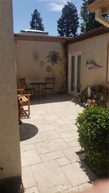 Andaluz Model i Laguna Woods, a 55+ community with Gate Guarded community. The property has 3 bedroom and 2 bath model. You enter through the front gate into a welcoming court yard where you can have morning coffee and relaxing afternoon with wine with friends. In through the front door to the bright living with natural sun light thru skylights, dining area and kitchen. The bedrooms are down the hall with first bedroom is great for guest, large 2nd bedroom with a sliding door to the court yard and a walk in closet, the 3rd bedroom has a bathroom and walk in closet and sliding door to back patio. All the windows and sliding doors have been upgraded to dual pane windows. The kitchen has granite counter tops. Property is move in ready. The community offers several amenities swimming pools, pickle ball, tennis and golf, and activities each month. This property is near club house 6