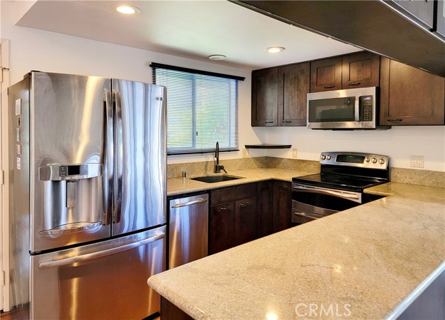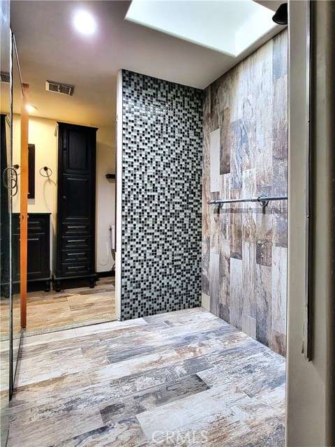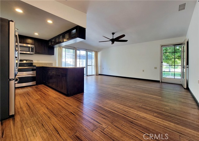 Cottage Style one level home with no steps! Welcome to this beautifully upgraded San Sebastian end-unit tucked away on a peaceful cul-de-sac in the desirable 55+ community of Laguna Woods. This 2-bedroom, Jack-and-Jill bath home blends cottage charm with contemporary style. Thoughtfully renovated, this home features central A/C, in-unit washer and dryer, and GE Profile stainless steel appliances including a double oven, refrigerator, dishwasher, and microwave. Warm bamboo wood floors flow throughout, complemented by solid knotty alder interior doors and smooth ceilings. The redesigned Jack-and-Jill bath boasts a skylight, a spacious tiled shower with a low profile entry, modern vanities, and distinctive fixtures. The inviting kitchen offers rich wood cabinetry, ample storage, a farmhouse sink, granite countertops, recessed lighting, and a seamless connection to the living room—perfect for entertaining. Both bedrooms are enhanced with plantation shutters, and every detail has been curated for comfort and style. Enjoy the best of Laguna Woods living in this cottage-style retreat at the heart of the Village—close to amenities, yet quietly removed from the bustle of modern city life.