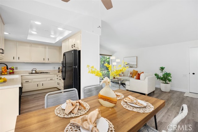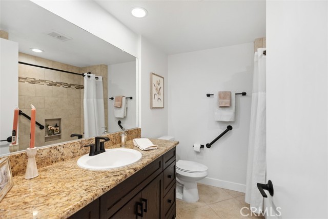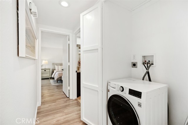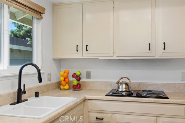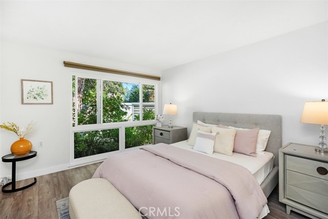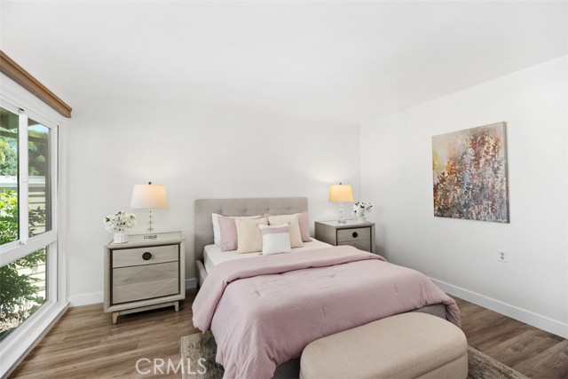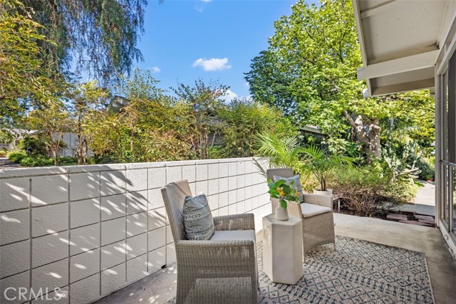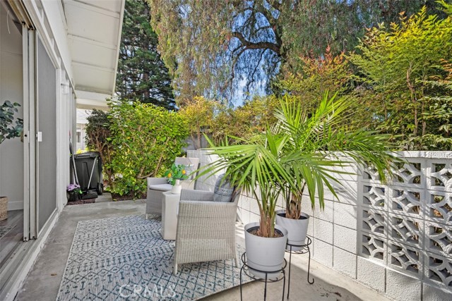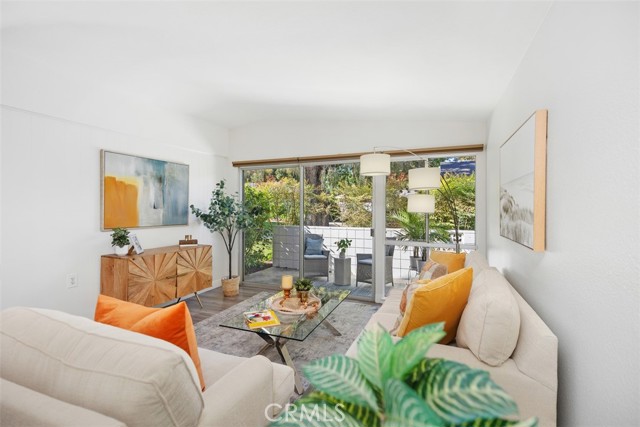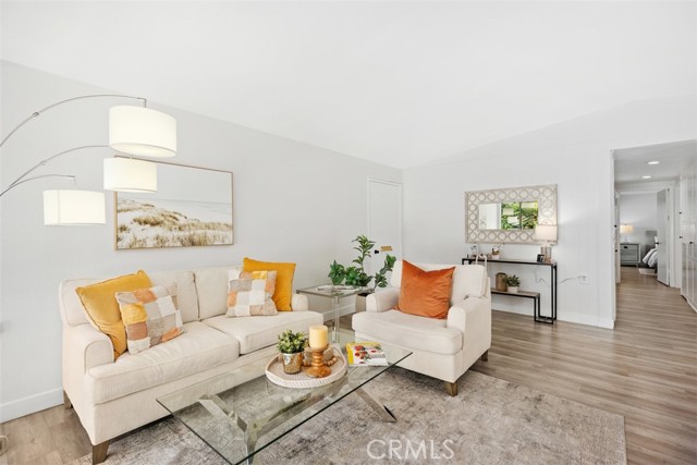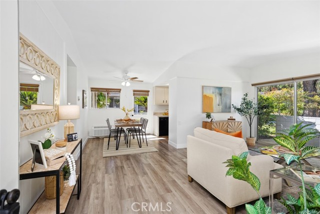 Remodeled single level, end unit cottage home located in quiet, beautiful area close to Clubhouses 1 & 3 and great walking areas! "San Sebastian" co-op - a popular floorplan with vaulted ceiling in the living room, front and back doors, windows facing every direction for great light and breezes and only one shared wall. Upgrades include fresh paint, smooth ceilings, dual pane windows (except for living and dining areas), brand new heat pump, inside laundry, new faucets and fixtures, 2 separate bathrooms (not Jack and Jill type), water resistant laminate flooring and new baseboards for an updated look. Living room and bedroom windows feature Hunter Douglas electric honeycomb room darkening blinds. Beautiful walk-up from the very close carport (check it out - it is marked with a sign) through the lush greenbelt area to your front door. Inside, the living room features vaulted ceiling, sliding door and window leading the patio area. Patio wall has been lowered to enjoy the green outlook! Adjacent dining area has door leading to a shared back courtyard and ceiling fan with light. Kitchen contains HOA appliances and raised countertop plus upgraded recessed LED lights. Guest bathroom enjoys an oversized tile shower with glass enclosure and granite-topped vanity. Across the hall is the guest bedroom with great storage and large windows. Hallway closet houses WASHER/DRYER - there is currently an all-in-one unit included but can hold a stacked set. Primary bathroom has tub with tile surround and matching granite vanity. Primary bedroom is brightened by a large window area receiving the morning sun and holds ample closet space. EXPERIENCE THIS HOME IN THE WALK-THRU VIRTUAL TOUR - CLICK ON THE WHITE CIRCLES TO WALK-THRU, 360 ICON TO GO OUTSIDE AND WALKING PERSON ICON TO COME BACK IN! Laguna Woods Village residents enjoy a 27-hole championship golf course, a 9-hole executive par 3 course, pickleball and tennis courts, lawn bowling, gyms, clubhouses, swimming pools, horse stables, gardening centers, artist studios, computer workrooms and classes + over 200 clubs and organizations.