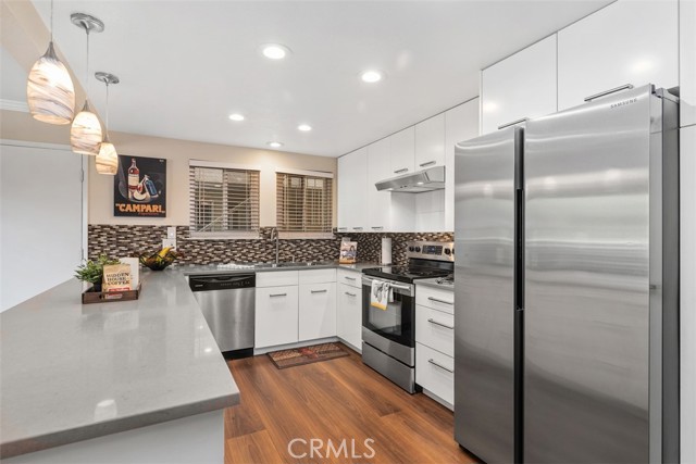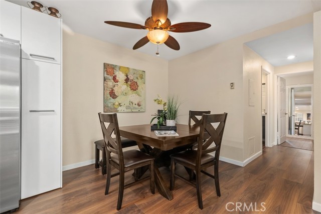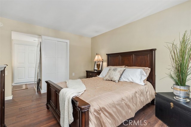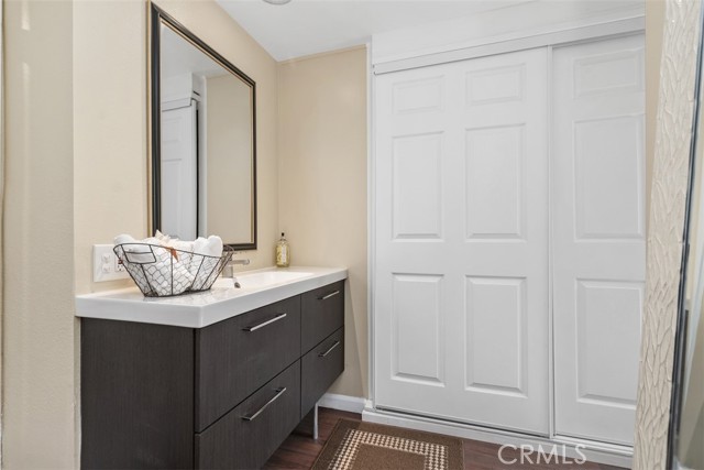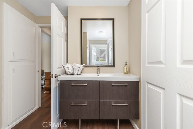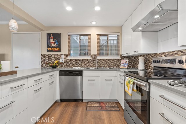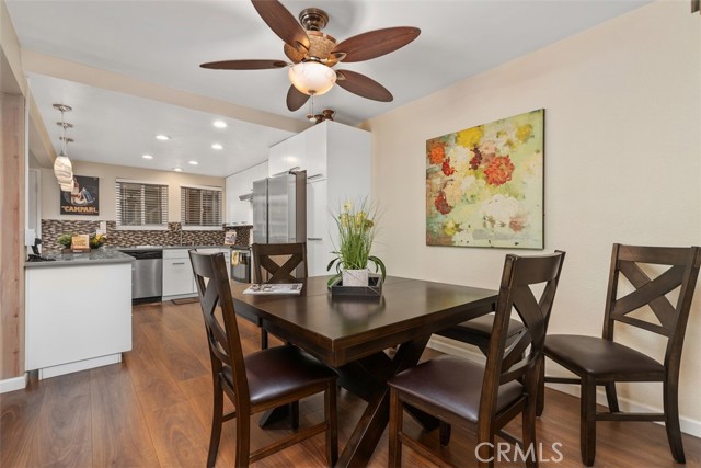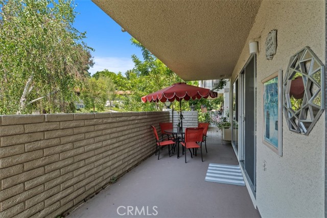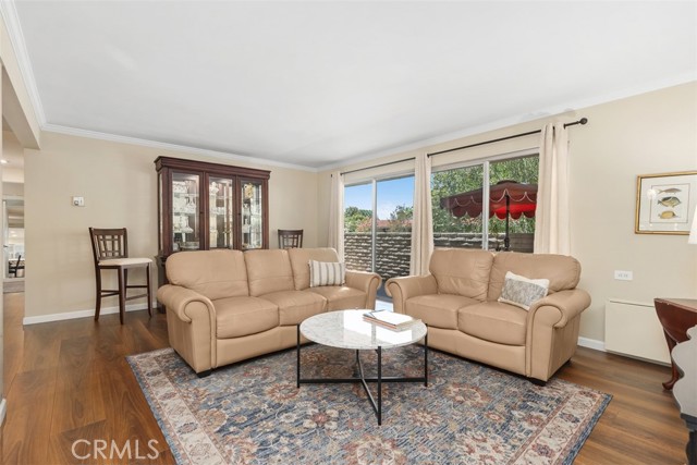 Beautifully remodeled Casa Linda, perfectly located near the creek with a lush garden view and gorgeous sunsets from the balcony. This desirable downstairs residence offers the convenience of ground-level access with the privacy and airy feel of an elevated home — truly the best of both worlds! Nestled on a lovely street close to the greenbelt, with nearby carport and guest parking, this home greets you with quality upgrades throughout: AC in the living room, ceiling heating system, smooth ceilings, an open kitchen, and in-home washer and dryer. Stunning laminate flooring flows through the home. The spacious living room opens to a covered balcony, a place to relax and enjoy the vibrant garden and flowers. The open kitchen features quartz countertops, quality white cabinetry, and matching appliances, ideal for living and entertaining. Down the hall, you’ll find a welcoming guest bedroom with mirrored closet doors and a ceiling fan, plus a beautifully remodeled guest bath with a tub/shower combo. The reimagined primary suite includes an expanded bath area with a shower, corner closet, and stack washer/dryer, all entirely remodeled with attention to detail. The primary bedroom also offers mirrored closet doors and a ceiling fan for comfort. A truly inviting home in a peaceful, picturesque setting! Laguna Woods Village residents enjoy resort-style living with exceptional amenities: a 27-hole championship golf course, 9-hole executive par-3 course, pickleball and tennis courts, lawn bowling, gyms, clubhouses, swimming pools, horse stables, gardening centers, artist studios, computer workrooms, and over 200 clubs and organizations.