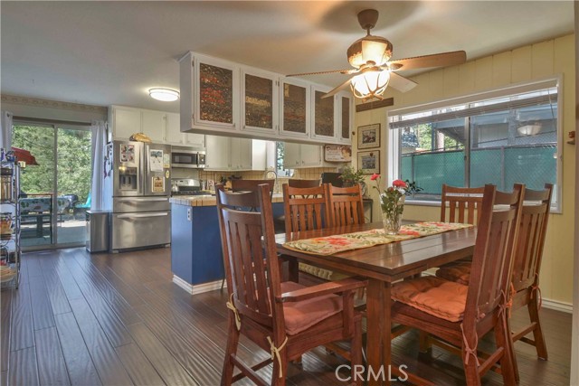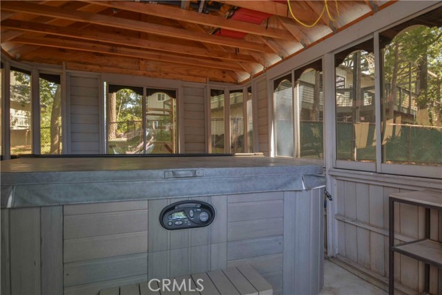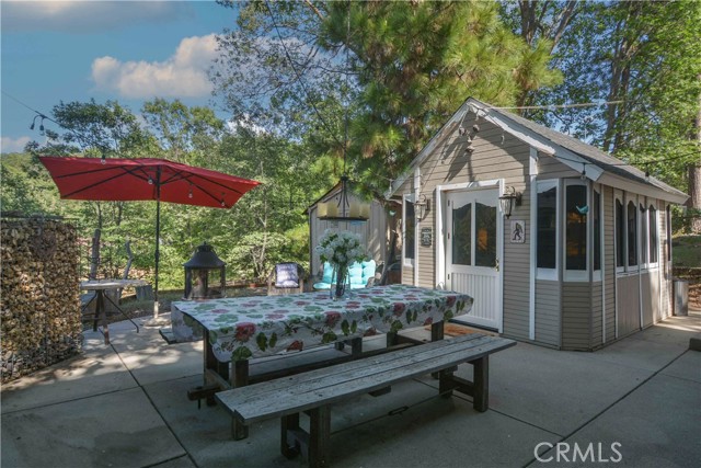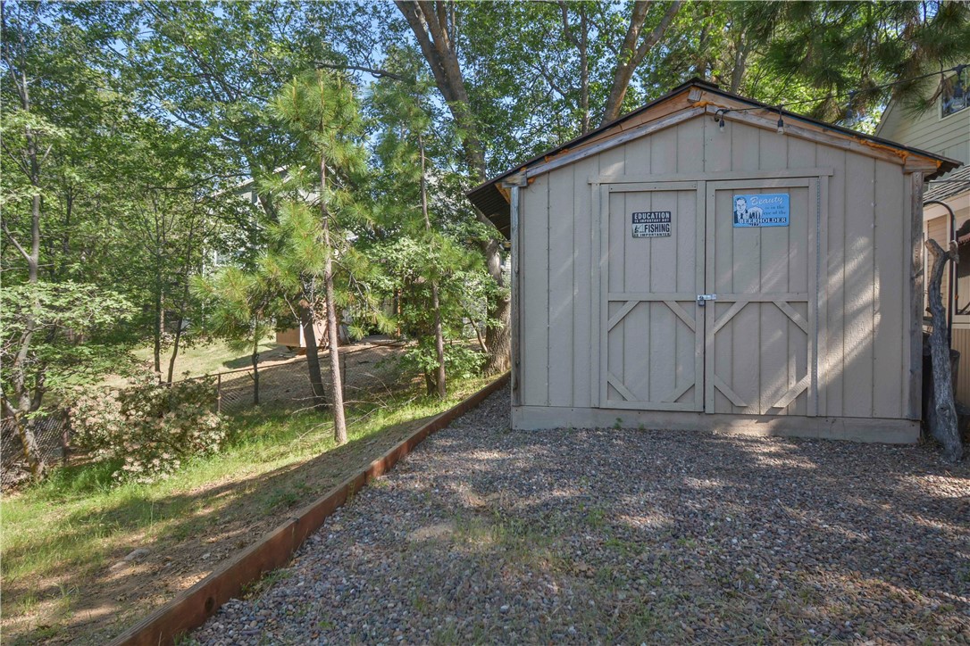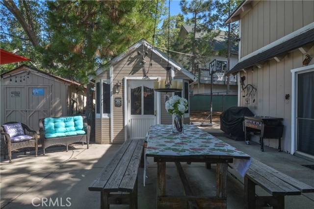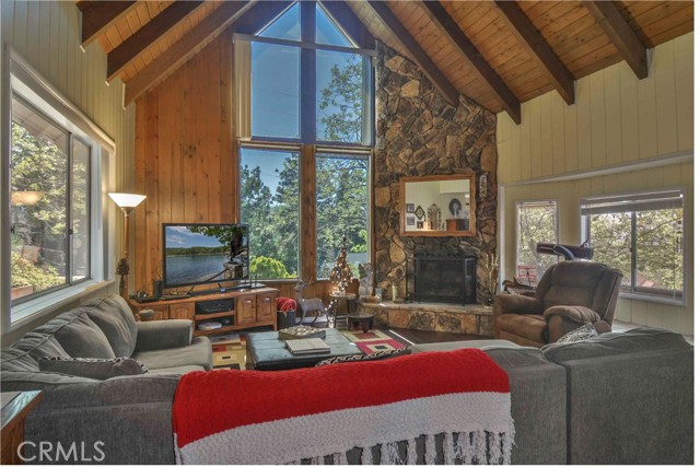 Step into this bright, open-concept living room, featuring vaulted ceilings, a floor to ceiling fireplace, soaring windows framing mountain views that flood the space with natural light, creating an entertainers dream. Featuring 3 bedrooms, 2 1/2 bathrooms, with the primary bedroom conveniently located on the main level. This turnkey property comes furnished. The layout is designed for both comfort and entertaining. With a spacious lot and backyard space, a storage shed and spa, fully fenced in backyard and ample parking, it will leave you feeling peace, privacy and serenity in this secluded setting. This charming mountain retreat is located in a sought-after Lake Arrowhead neighborhood. Nestled amidst the trees and close proximity to Tavern Bay Beach Club and Lake Rights, the possibilities are endless. Live where others vacation and experience the best of beautiful Lake Arrowhead. Whether you're looking for a full-time residence, mountain getaway, or an investment property, this perfect mountain escape checks all the boxes.